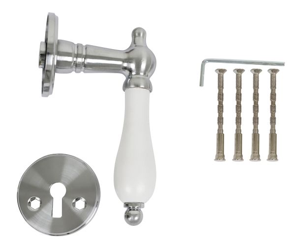 Leveres med massive rosetter, nøgleskilte og skruer til montering.