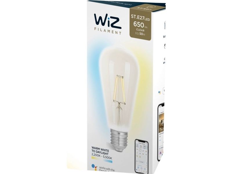 WiZ Wiz G2 Tw+ Dimming St64 E27 Clear Glass Bulb 12w White Filament Clear