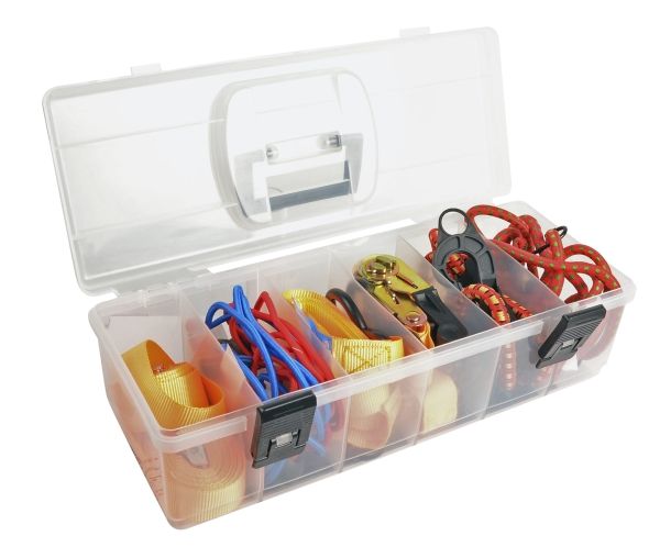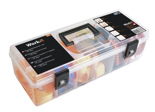 Bagagefastspændersæt med 16 dele i praktisk kasse: