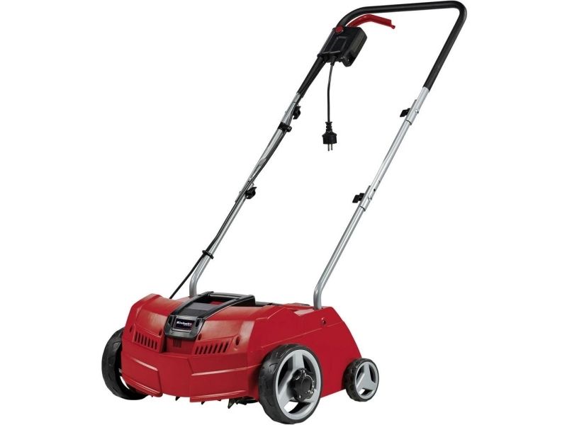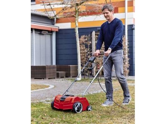 GC-ES 1231/1 elektrisk vertikalskærer er en kraftfuld og pålidelig maskine, når den lille til middelstore plæne skal holdes sund på en professionel måde. De 8 dobbelte kvalitetsknive på den kuglelejemonterede cylinder bekæmper ukrudt og mos helt nede ved rødderne. Den lavtgearede motor på 1200 W med højt moment driver maskinen og giver konsistent gode resultater. Arbejdsdybden kan centralt justeres i 3 trin, så du let kan tilpasse vertikalskæreren til de nøjagtige krav for plænen og jorden. Parkeringspositionen beskytter knivene og underlaget, når du stiller maskinen fra dig. De store hjul gør det nemmere at arbejde i vanskeligt terræn og belaster samtidig plænen mindre. Maskinens robuste kabinet er udført i slagfast plast af høj kvalitet. Styret kan foldes sammen, så vertikalskæreren fylder mindre ved opbevaring. Vertikalskæreren anbefales til plæner på op til cirka 300 m².