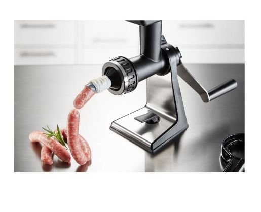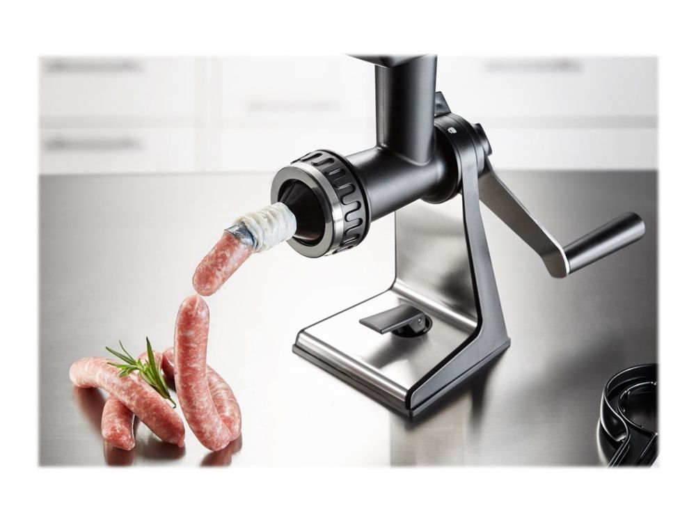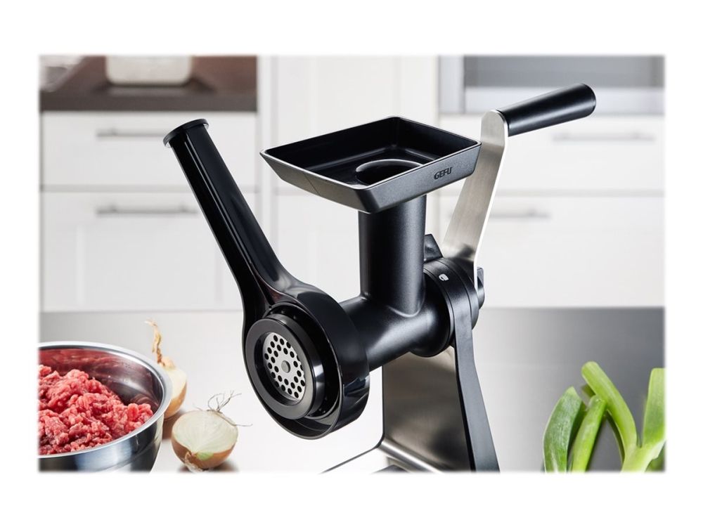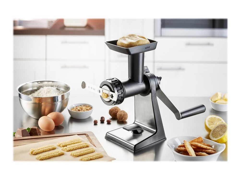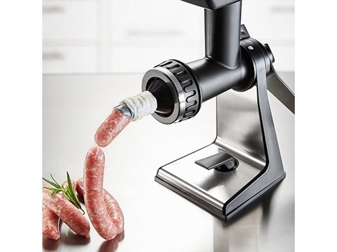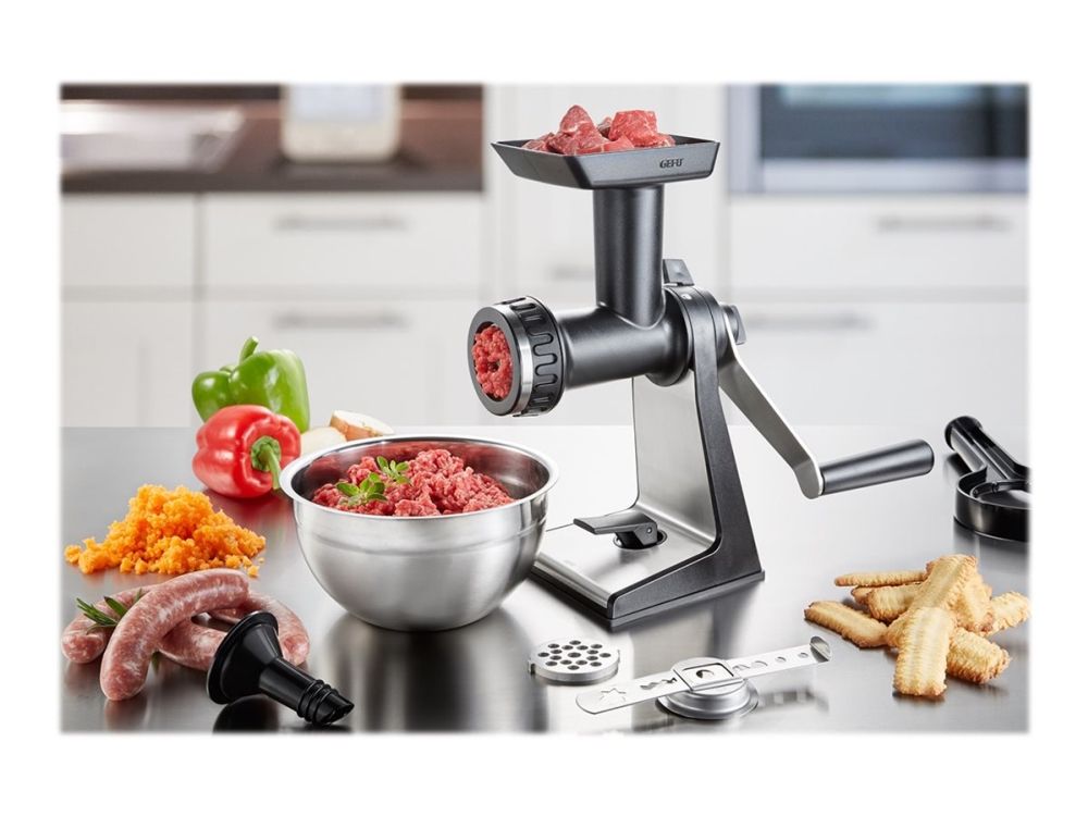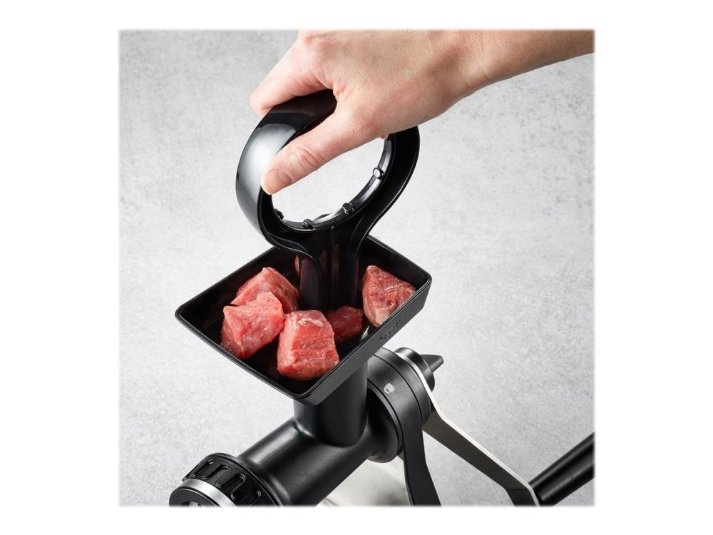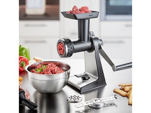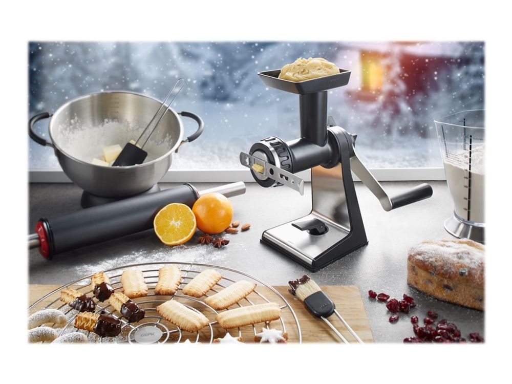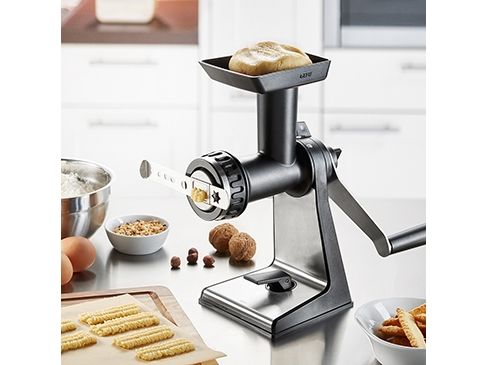 Sweet or savoury – the meat mincer comes with practical accessories for home cooking. Its sophisticated construction guarantees easy meat and veg grinding, and spritz biscuits will also come out in perfect shape!