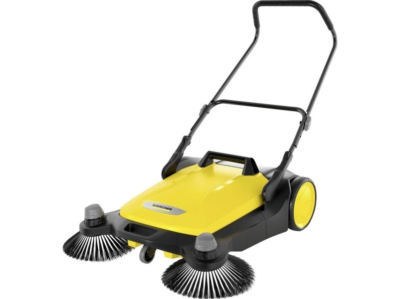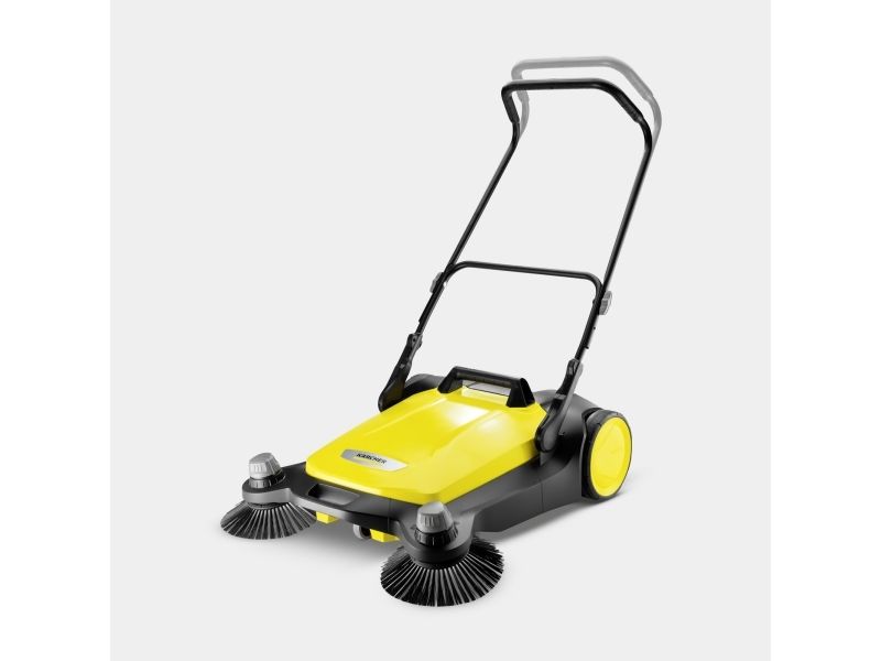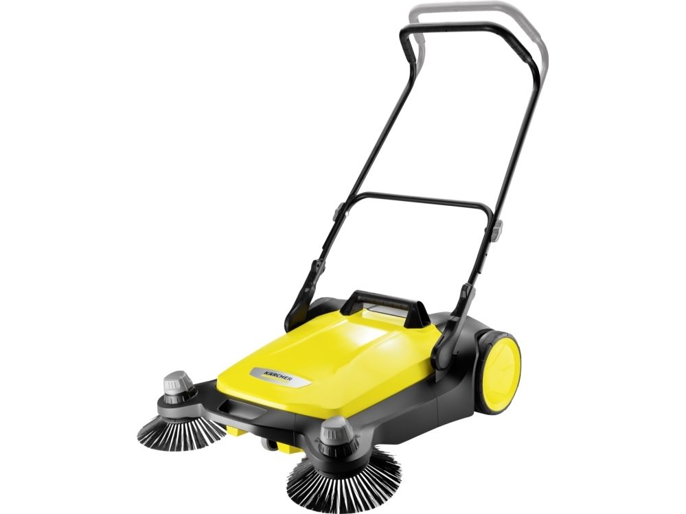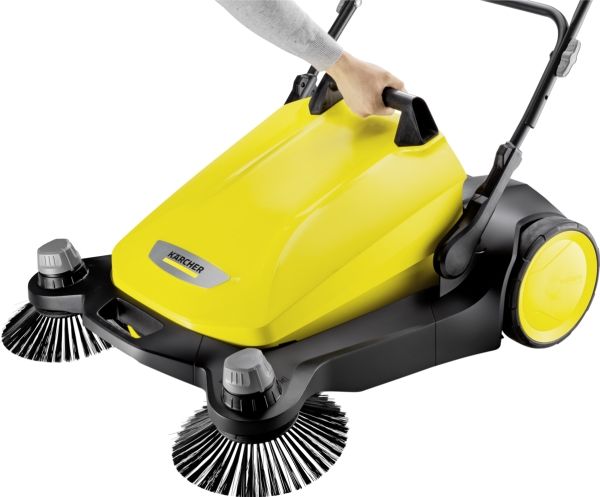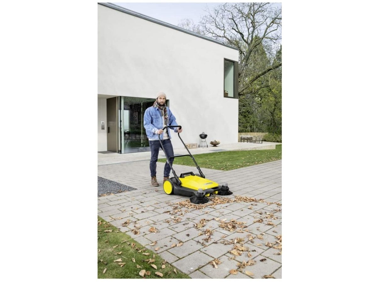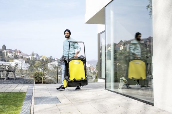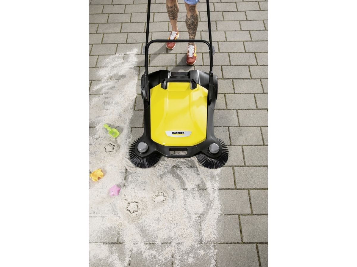 Kärcher S6 Twin fejemaskine Forår, sommer, efterår og vinter - den nye fejemaskine S 6 Twin fra Kärcher egner sig til rengøring hele året rundt i huset og i haven. Den er effektiv: Takket være den kraftige fejerulle, dens 2 sidekoste og dens fejebredde på i alt 860 mm vender den uden besvær flader på op til 3000 m² på 1 time. Den er ergonomisk: Skubbebøjlen kan nemt indstilles i 2 positioner, uden at man skal bøje sig, og kan dermed tilpasses optimalt til brugerens kropsstørrelse. Og det er rent: Fejeemnet lander direkte i en 38 liter tønde fejebeholder, som ved tømning ikke forårsager snavsede hænder. Et andet højdepunkt er ekstra højdejustering af sidekosten, som gør det muligt at justere trykpresset på hver fejt – og dermed optimale fejeresultater. Desuden kan S 6 Twin nemt klappes helt om ved hjælp af en trædeflade på rammen, som pladsbesparende kan opbevares. Takket være værktøjsfri sidepåføring er fejemaskinen klar til brug på et øjeblik.