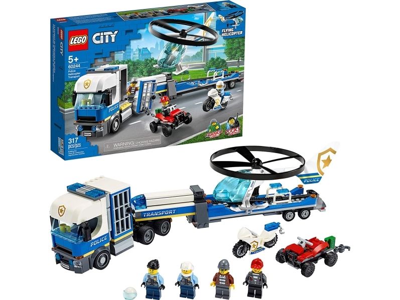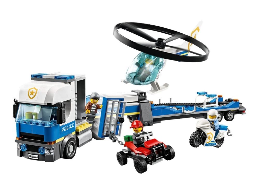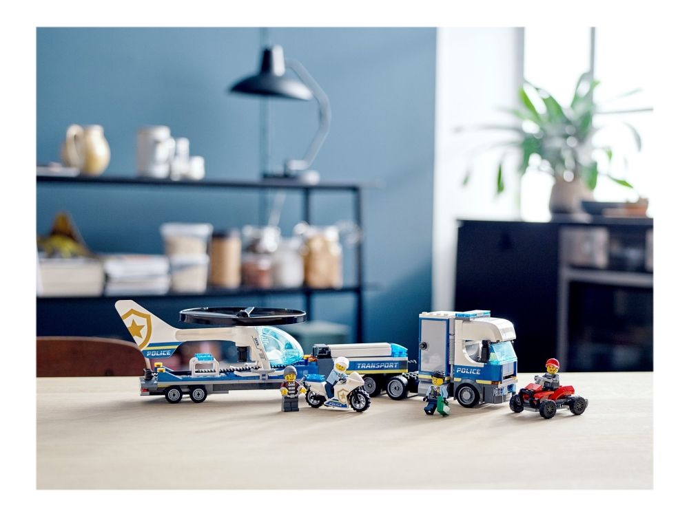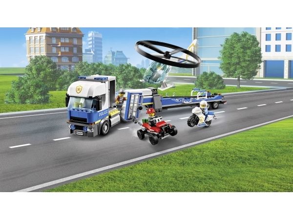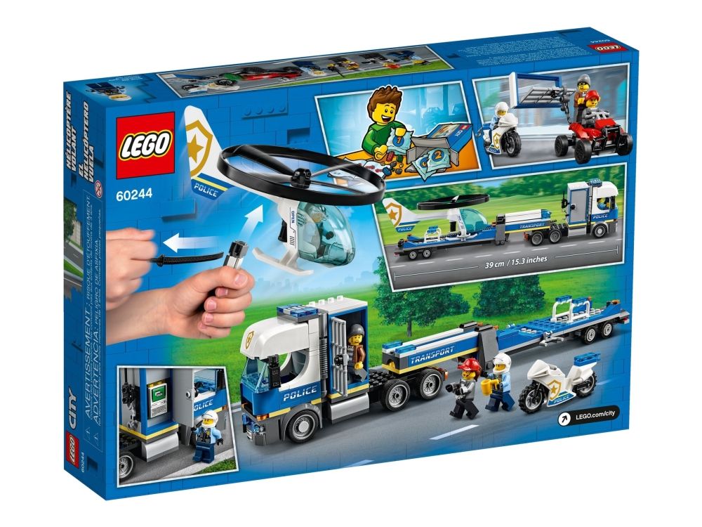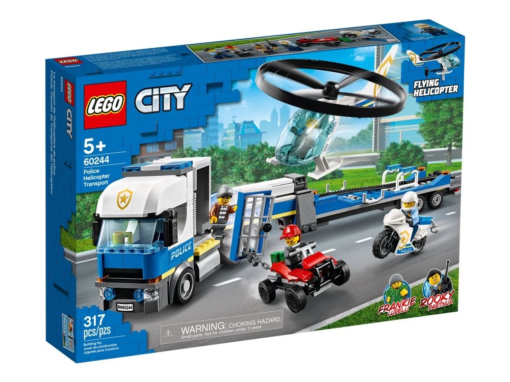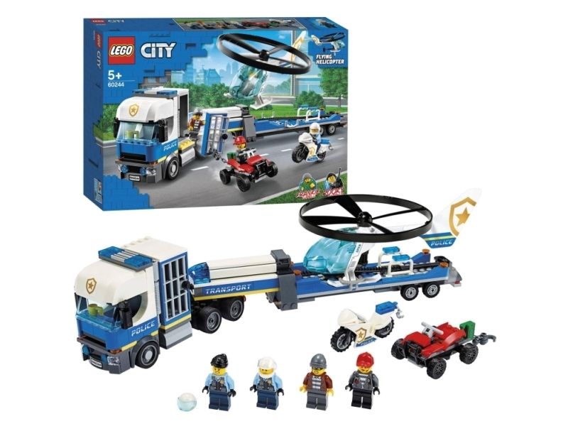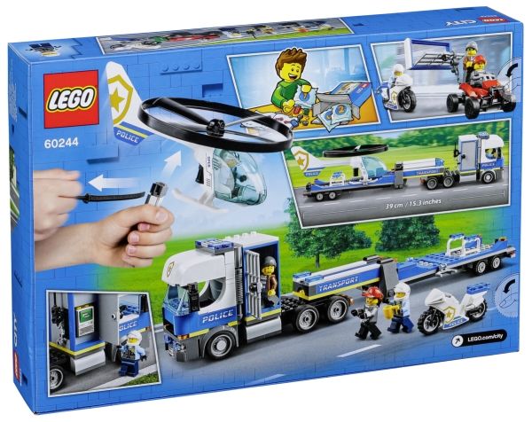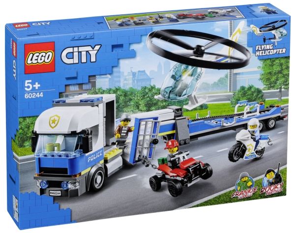 Fantastisk byggesett for barn som liker actionleker. Settet LEGO City politiets helikoptertransport (60244) inkluderer helikopter med utløsersnor som flyr på ekte. La små politibetjenter oppleve fart og spenning med politibetjent Rooky Partnur, som prøver å sette den beryktede skurken Frankie Lupelli bak lås og slå. Settet inkluderer også en transporttrailer for politihelikopteret, en motorsykkel, en mobil fengselscelle og skurkenes ATV. Tøft politilekesett for barn Politileken inkluderer en enkel byggeveiledning samt Instructions PLUS - en interaktiv byggeveiledning med funksjoner for zooming og rotering som gjør unge LEGO byggere til mesterbyggere. Instructions Plus er inkludert i LEGO Life gratisappen for smarttelefoner og nettbrett. LEGO City politiets fengslende verden LEGO City politisett byr på morsomme bygge- og lekeopplevelser. De realistiske kjøretøyene, detaljerte bygningene og gøyale figurene stimulerer til fantasifull og rollespillbasert frilek for barn i alle aldre.