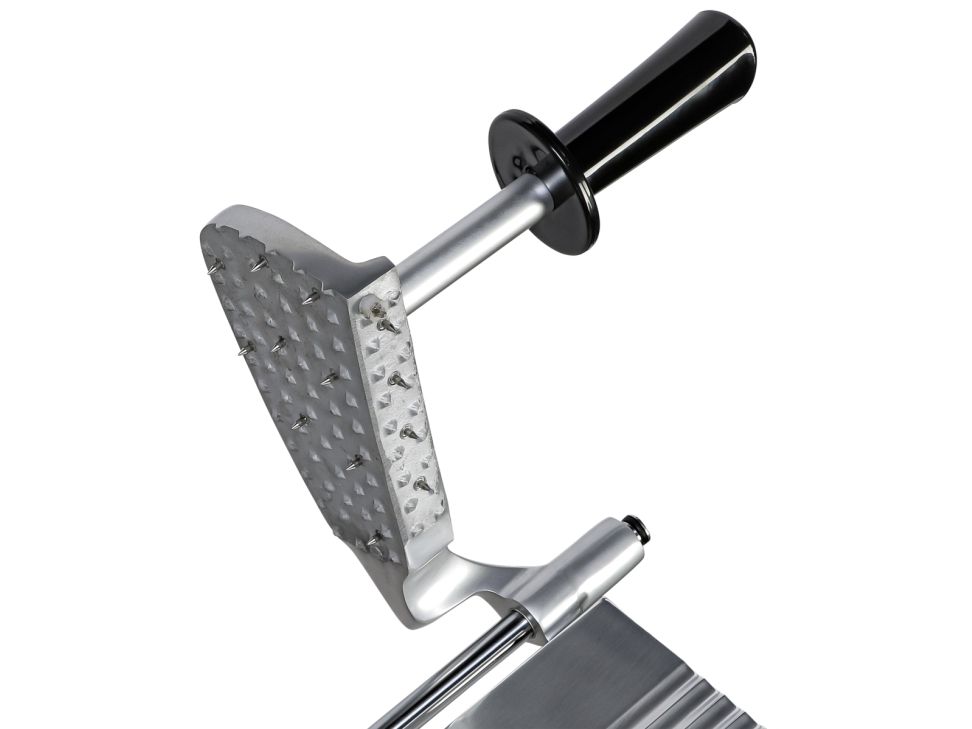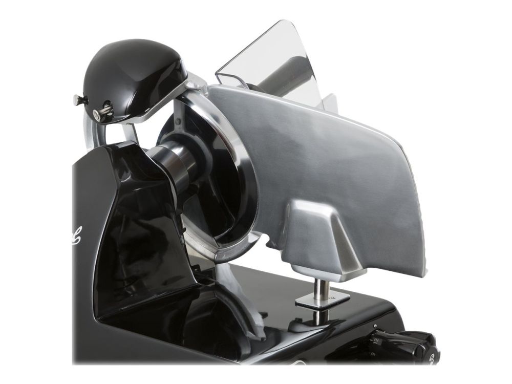 The steel blade ensures a perfect cut to make thin and even slices while reducing waste. The built-in sharpener enhances blade efficiency and durability. The slice deflector, blade cover, and meat table can be removed easily to ensure quick and accurate cleaning operations.
