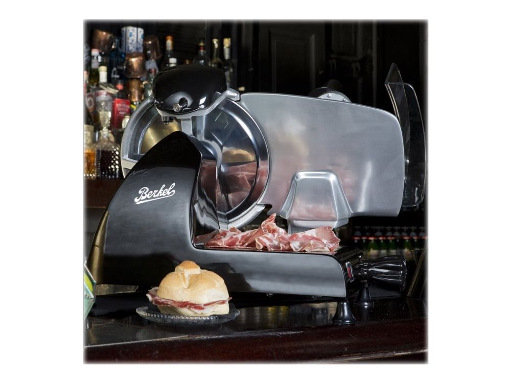 RED LINE encompasses all the technology of professional Berkel meat slicers. This professional electric slicer for home use is elegant and lightweight and is made of a special aluminum alloy.