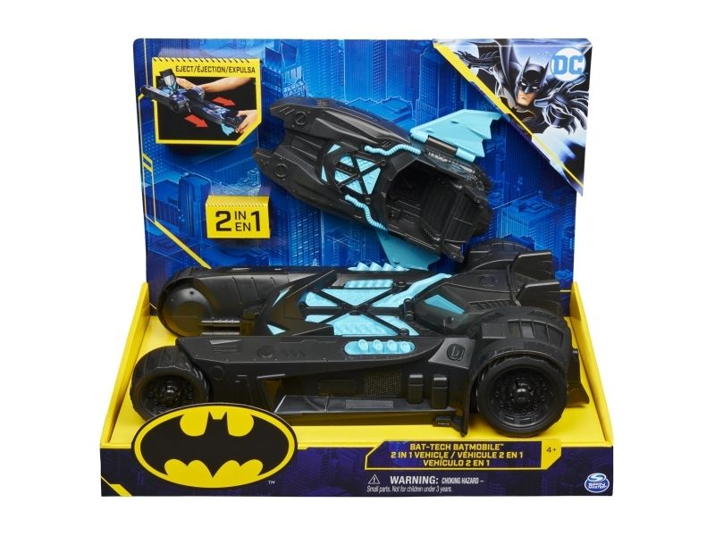 Batmobilen kommer med alt som trengs for å gjøre Gothams gater sikre. Denne flotte Batmobil har en gjemt Batbåt som kan skytes ut av Batmobilens bakende. Alder 3+.