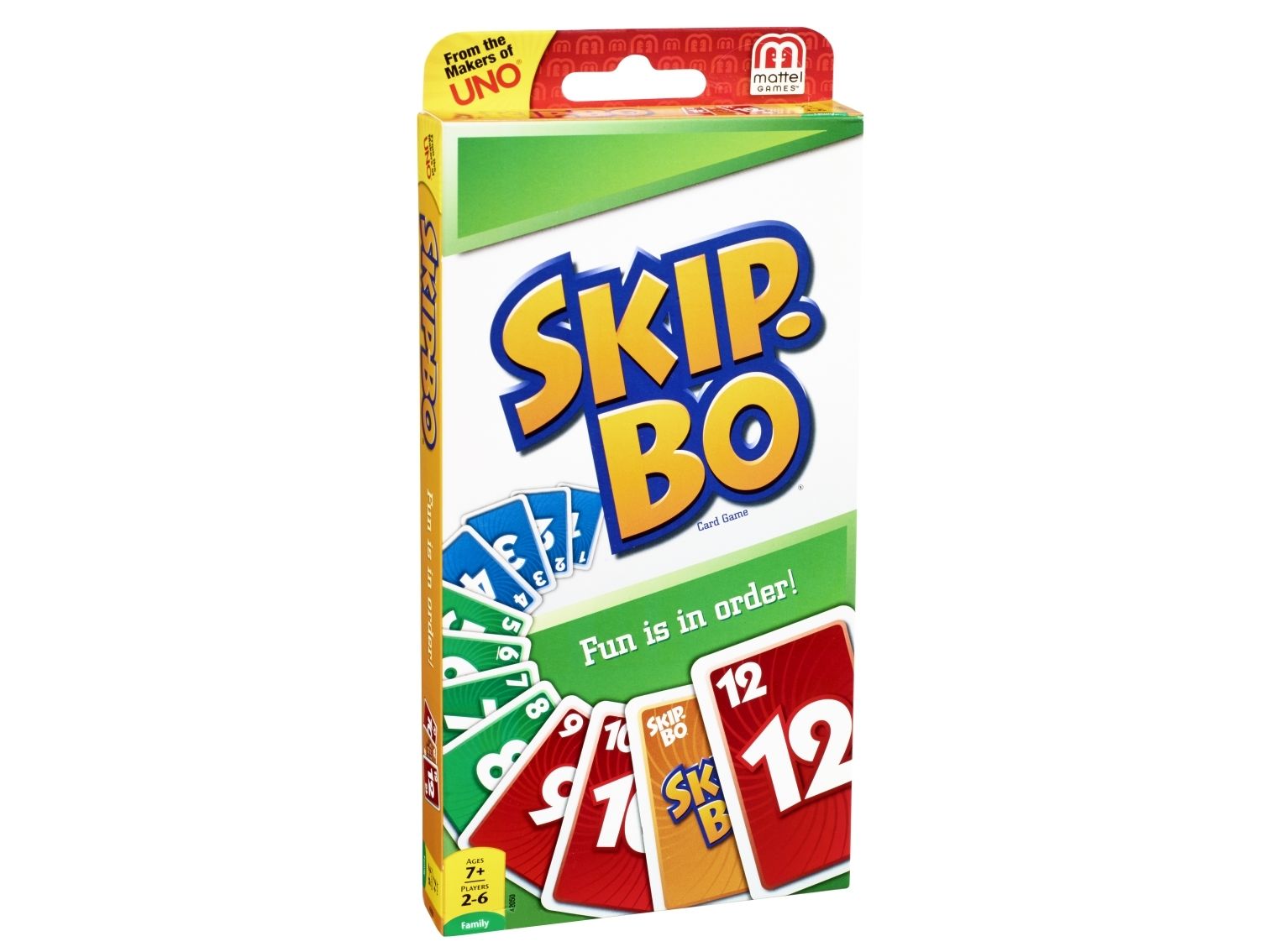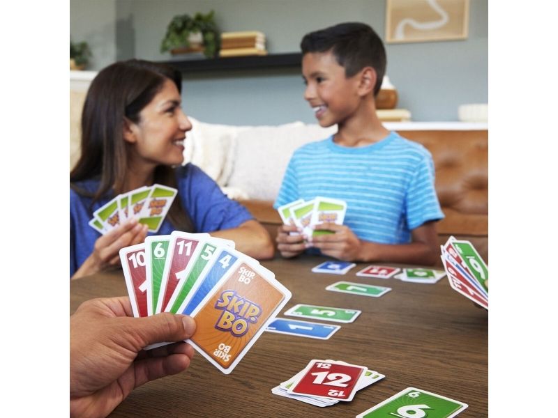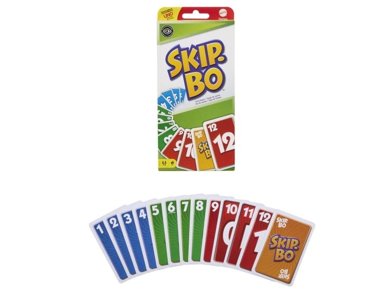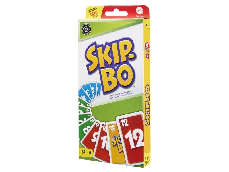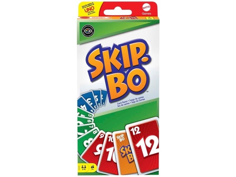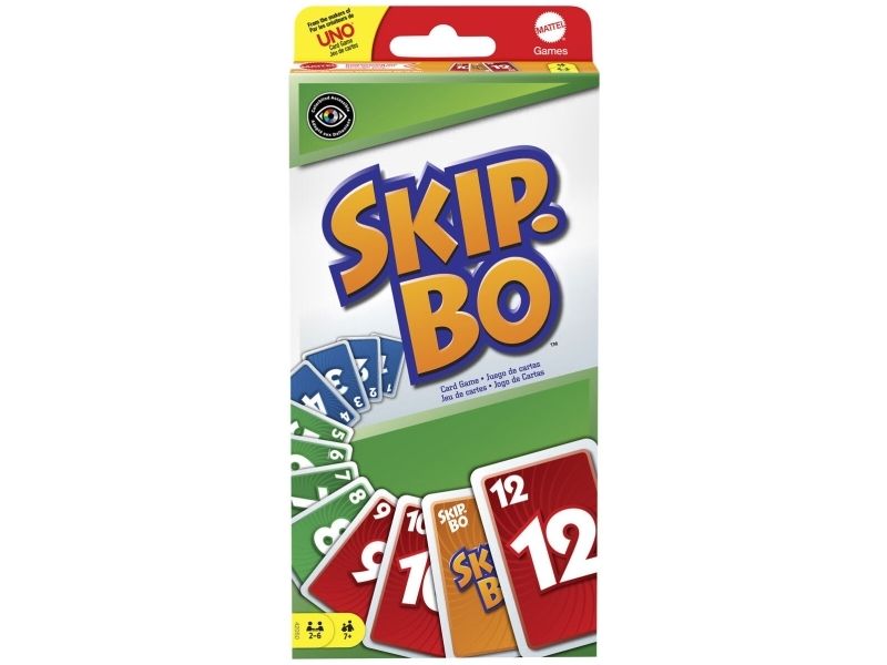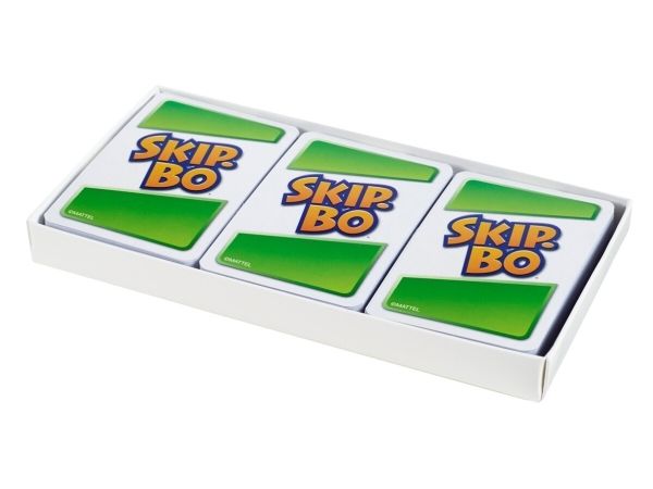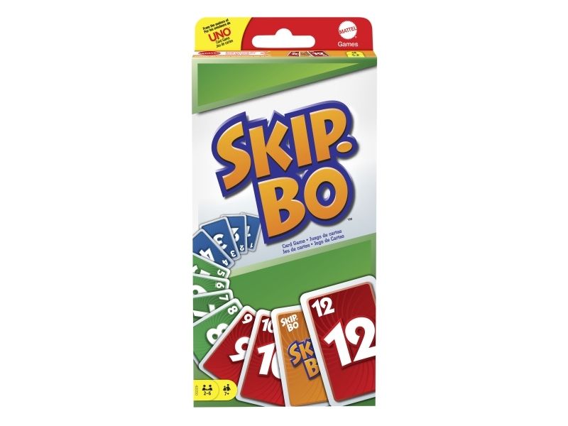 Skip-Bo er det ultimate kortspillet der man spiller ut kortene i stigende rekkefølge – fra skaperne av UNO. Spillerne bruker både dyktighet og strategiske evner for å lage bunker med kort i stigende rekkefølge (2,3,4…) til de ikke har flere kort igjen. Når alle har fått utdelt kort, starter spillet ved at man trekker fra en felles bunke og legger ut kort i opptil fire nye bunker. Skip-Bo-jokerkortene løser statiske situasjoner og kan spilles ut som hvilket som helst tall. Bruk disse kortene fornuftig, for de kan virkelig hjelpe deg med å slå motspillerne. Den første spilleren som spiller alle Skip-Bo-kortene i bunken sin, vinner. Inneholder 162 kort og spilleregler. Farger og dekor kan variere.