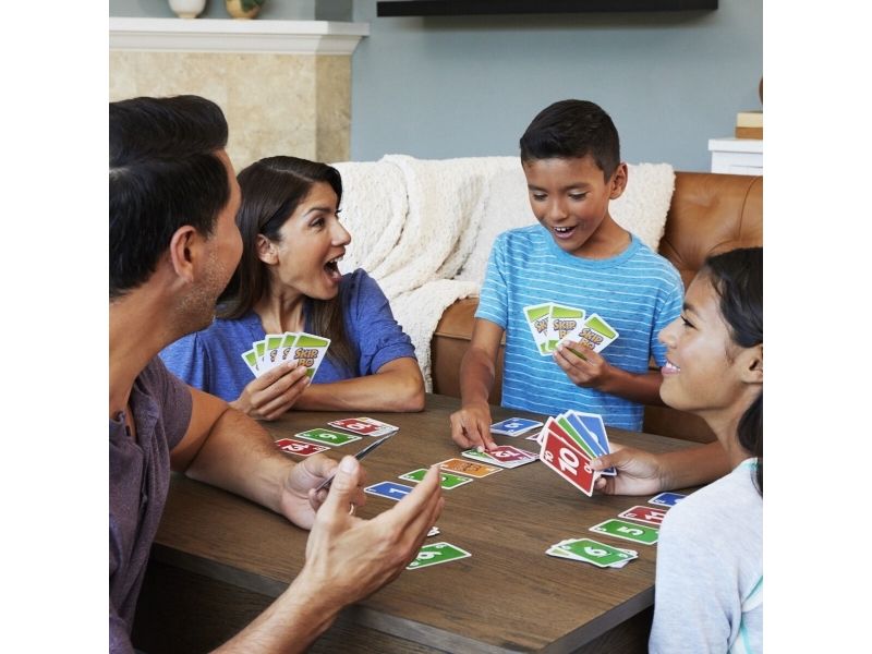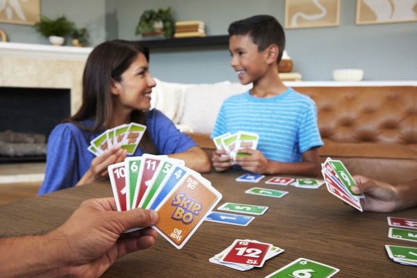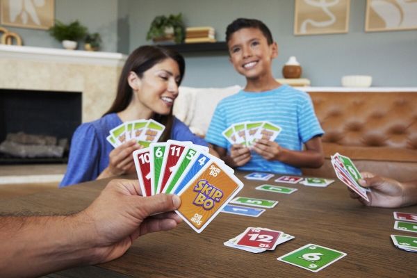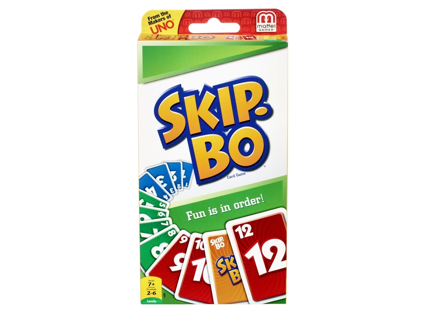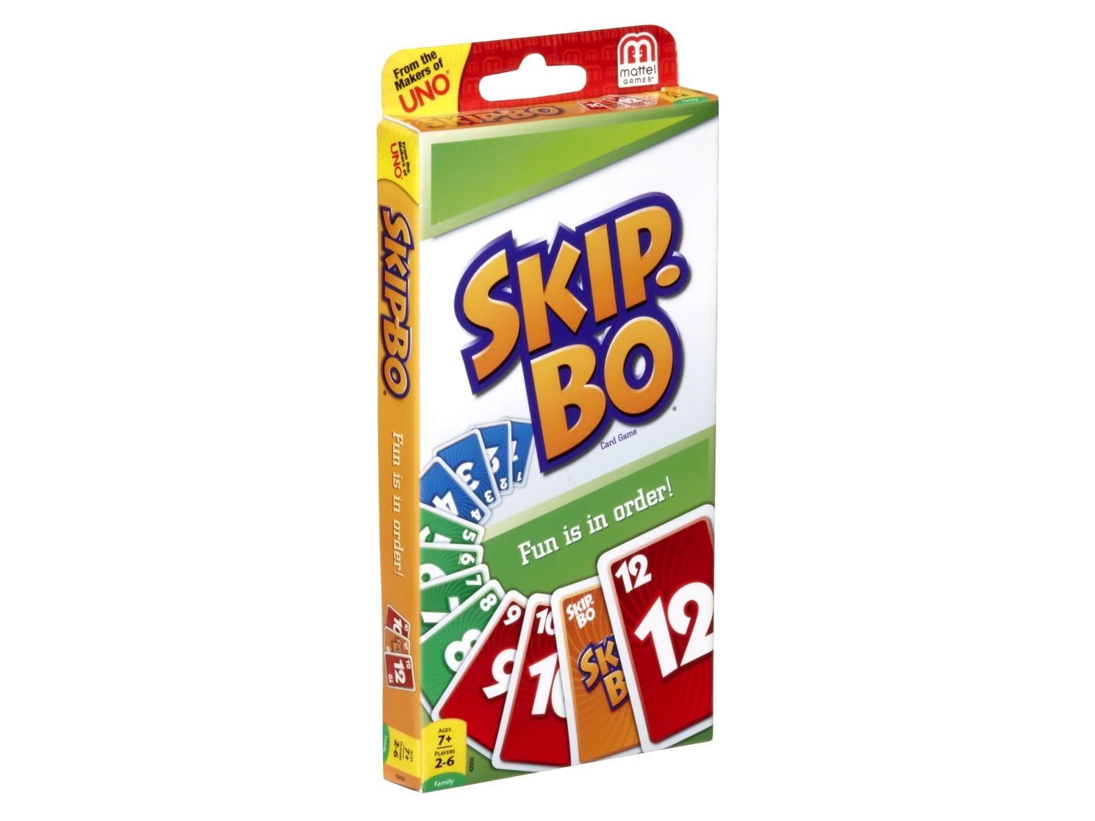 Skip-Bo er det ultimate kortspillet der man spiller ut kortene i stigende rekkefølge – fra skaperne av UNO. Spillerne bruker både dyktighet og strategiske evner for å lage bunker med kort i stigende rekkefølge (2,3,4…) til de ikke har flere kort igjen. Når alle har fått utdelt kort, starter spillet ved at man trekker fra en felles bunke og legger ut kort i opptil fire nye bunker. Skip-Bo-jokerkortene løser statiske situasjoner og kan spilles ut som hvilket som helst tall. Bruk disse kortene fornuftig, for de kan virkelig hjelpe deg med å slå motspillerne. Den første spilleren som spiller alle Skip-Bo-kortene i bunken sin, vinner. Inneholder 162 kort og spilleregler. Farger og dekor kan variere.