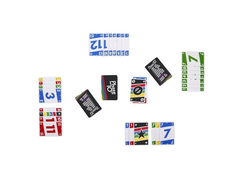 ?Fra produsentene av UNO kommer et rummy-lignende kortspill med en utfordrende og spennende vri! Målet med spillet er å være den første spilleren som fullfører 10 forskjellige faser med to sett med tre, syv på rad eller syv kort med samme farge. Vrien er at hver fase som skal fullføres, er spesifikk for hver utdelte hånd. Spillere som fullfører én fase, går videre til den neste, men de som ikke gjør det, må fortsette å prøve til de gjør det. Hver kortstokk har jokerkort og hopp-over-kort, som gjør spillet mer spennende og kan hjelpe deg ut av en kinkig situasjon. Et jokerkort kan brukes i stedet for et nummerkort og som en hvilken som helst farge for å fullføre en fase, mens et hopp-over-kort gjør at motstanderen mister sin tur! Vær den første personen å fullføre alle 10 fasene for å vinne spillet. Inneholder 108 kort og spilleregler. Farger og dekor kan variere.