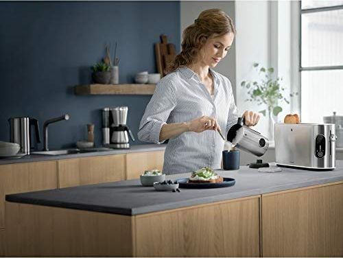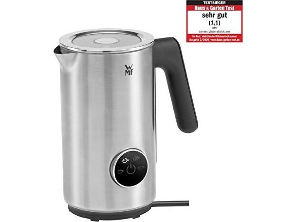 For a creamy cappuccino or tasty latte macchiato, perfectly frothed hot milk is essential. Now many other milk froth specialties are also enjoying increasing popularity – including other hot drinks such as hot chocolate and cold drinks like frappés and cocktails. The cordless WMF Lumero milk frother effortlessly masters them all with its four freely selectable programmes, which are easy to read on the LED display. The innovative, magnetically stored mixing arm is easy to remove afterwards, and thanks to the non-stick coating on the container, the appliance is extremely easy to clean. The stylish design that is typical of WMF is ensured by the casing made of high-quality Cromargan® and the separate appliance base with elegant LED lighting.