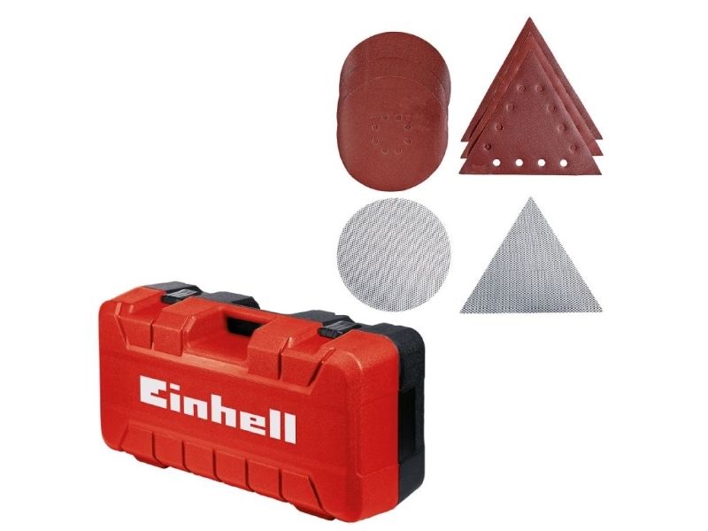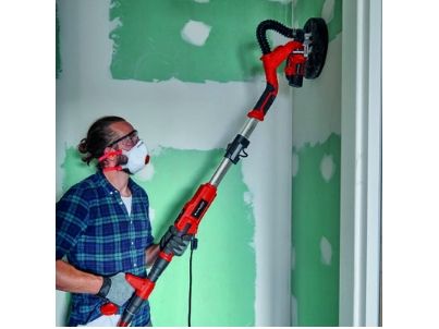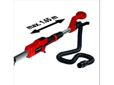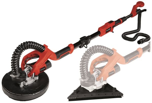 The Einhell Drywall Sander TE-DW 225 X is a helpful aid for renovation work or expansion projects in your own four walls. Whether for sanding off plaster-finished dry surfaces on walls or ceilings or for removing plaster or wallpaper residue from walls, all tasks can be managed effortlessly thanks to the powerful 750 W motor and the high-quality angular metal transmission. With an idle speed from 600 to 1,500 rpm and a sanding disk diameter of 225 mm, the Einhell Drywall Sander offers the perfect technical attributes for sturdy and reliable use in your domestic building site. The interchangeable sanding disk – round or triangular – ensures perfect application. The pivoting bearings ensure complete mobility in every situation. The mounting of the brush ring is spring-loaded. The folding long handle enables quick and easy assembly and dismantling. The telescopic handle can be freely adjusted to any length up to 165 cm, ensuring that ergonomic working procedures are possible in any situation, even when working overhead. The product is supplied with 3x round corundum sanding disks Ø225 mm (1*P60/1*P80/1*P120) and 3x triangular corundum sanding disks 285*285*285 mm (1*P60/1*P80/1*P120), and the high-quality even-weave fabric (1x round, 1x triangular) and the practical Einhell E-Box for transport and storage are also included.Einhell TE-DW 225 X. Product type: Floor polisher, Product colour: Black, Red, Motor speed: 1800 RPM. Power: 750 W, AC input voltage: 230-240 V, AC input frequency: 50 Hz. Products per master (outer) case: 2 pc(s), Master (outer) case gross weight: 22 kg, Master (outer) case length: 720 mm. Weight: 3.2 kg, Package weight: 10 kg, Package depth: 680 mm