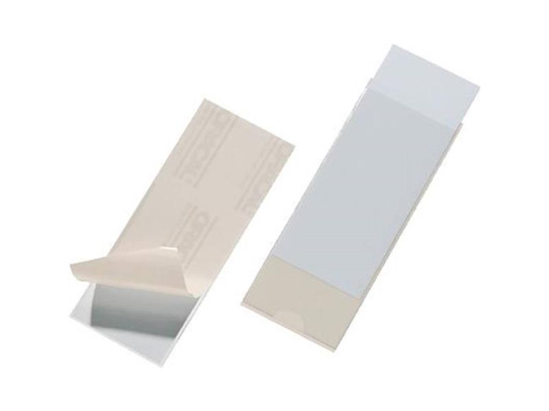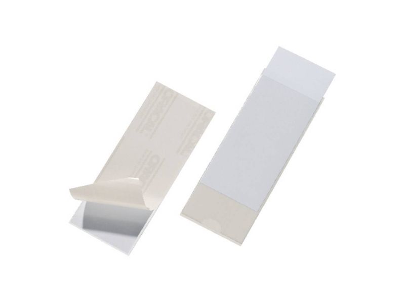 Selvklæbende lomme af transparent blødt folie med blanke indstiksskilte. Til mærkning af ringbind, mapper, hæfter, bakker, arkivkasser, reoler, døre, skabe og så videre.