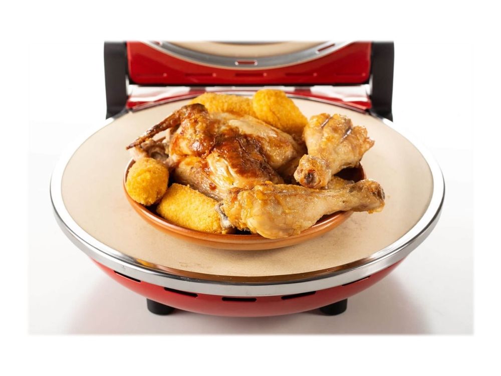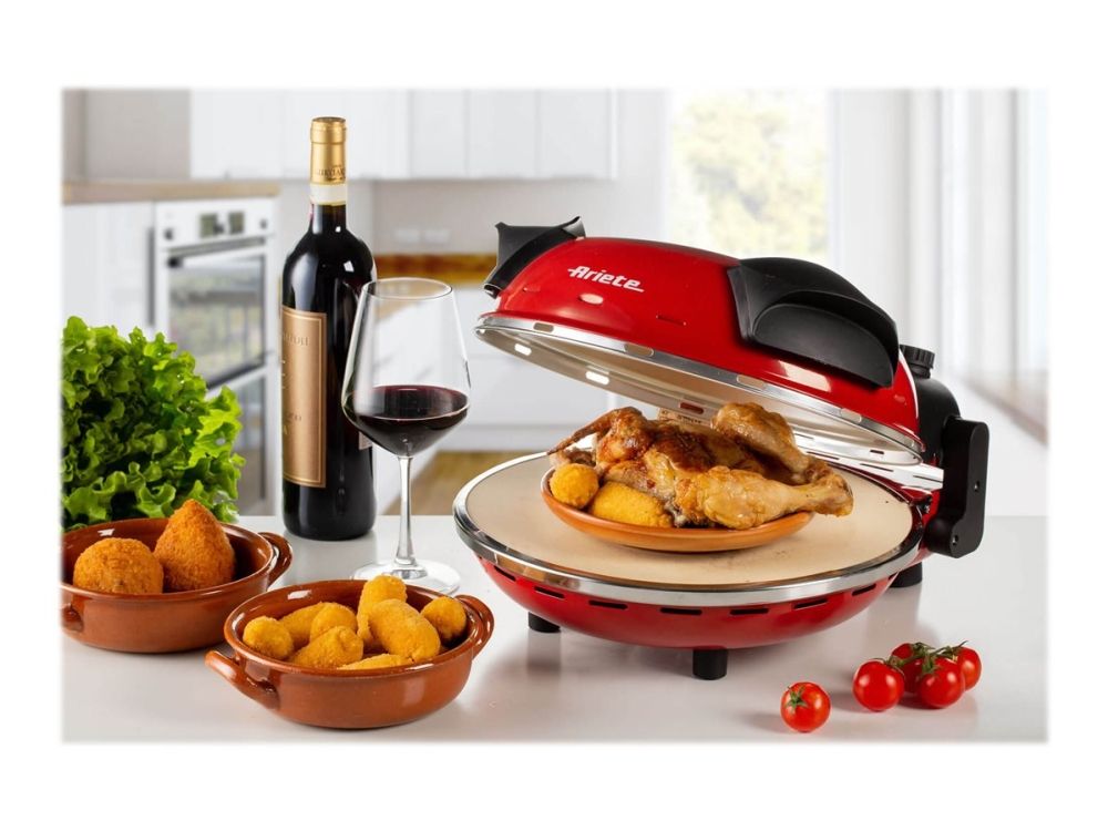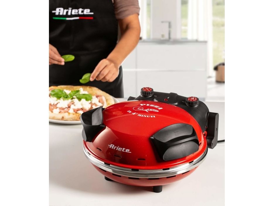 Da Gennaro is the electric oven to prepare excellent pizzas in just 4 minutes. The Ariete pizza oven has a refractory base and 1200W power, allowing it to reach the perfect temperature for cooking pizza and focaccia, just like in a real wood oven. It is fast, compact and perfect for fresh or frozen pizza. The Da Gennaro pizza oven comes complete with timer and 5 temperature settings that mean it is also great for cooking savory tarts, toasted sandwiches, filled pastries like in a traditional electric oven. You can enjoy the authentic flavor of the Neapolitan pizza in your own home.