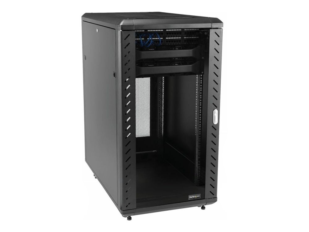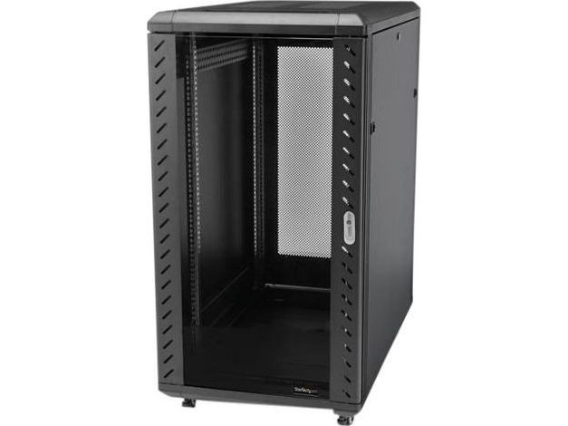 Startech 18U 19" Server Rack Cabinet, 4 Post Adjustable Depth (6-32")Locking Knock Down Network/Computer Equipment Enclosure, Mobile with Glass Door & Casters, HP ProLiant ThinkServer - Data Rack Enclosure (RK1836BKF) - Rack skap - 4-stangs - står på gulv - svart - 18U - 19"