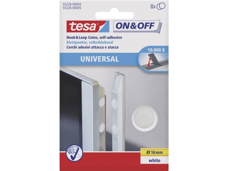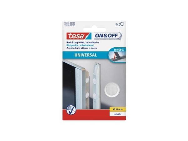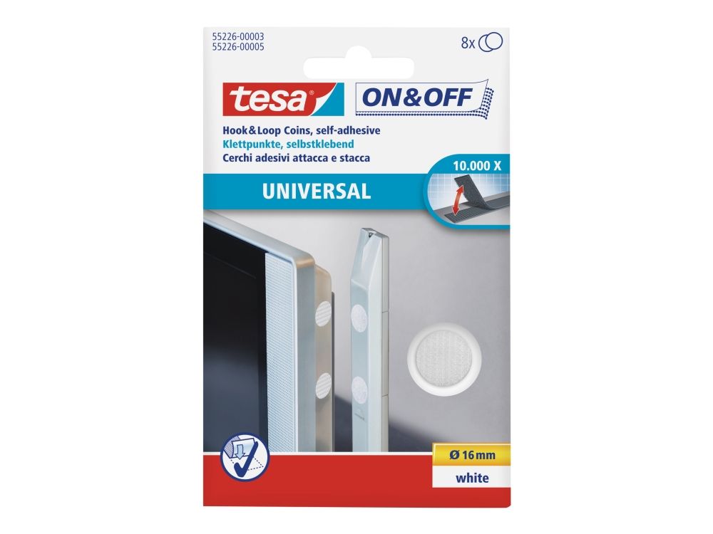 Tesa On & Off - Festeklister - 1,6 cm diameter - hvit - ikke permanent (en pakke 8)