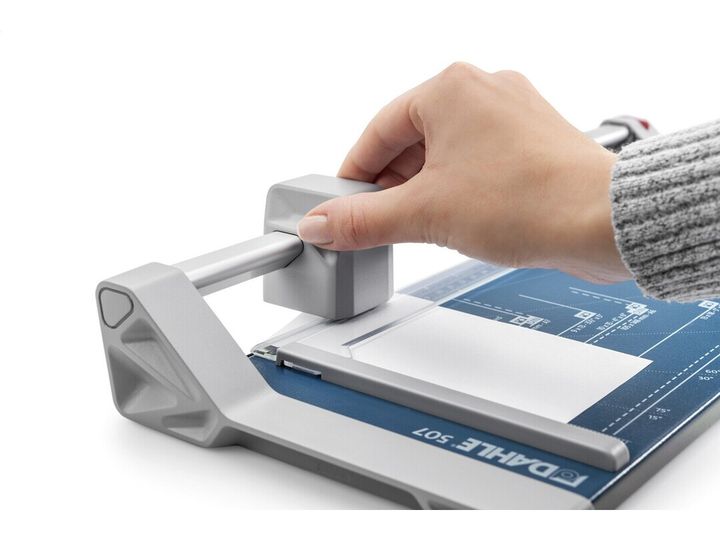 Discover the efficiency and precision of the Dahle 507 Generation 3 cutter, a notable addition to Erwin Müller's product line of cutters and trimmers. Designed to meet the needs of both professionals and hobbyists, this trimmer offers a cutting capacity of 0.8 mm or up to 8 sheets, making it perfect for handling various paper sizes, including A4. Its automatic paper-holding function and measuring scale ensure accurate cuts every time, while the replaceable blade system ensures long-term performance. Safety is a priority with the inclusion of a safety guard, providing peace of mind during use. Whether for office tasks, crafting projects, or any cutting job in between, the Dahle 507 Generation 3 is your reliable partner for achieving precise results with ease.