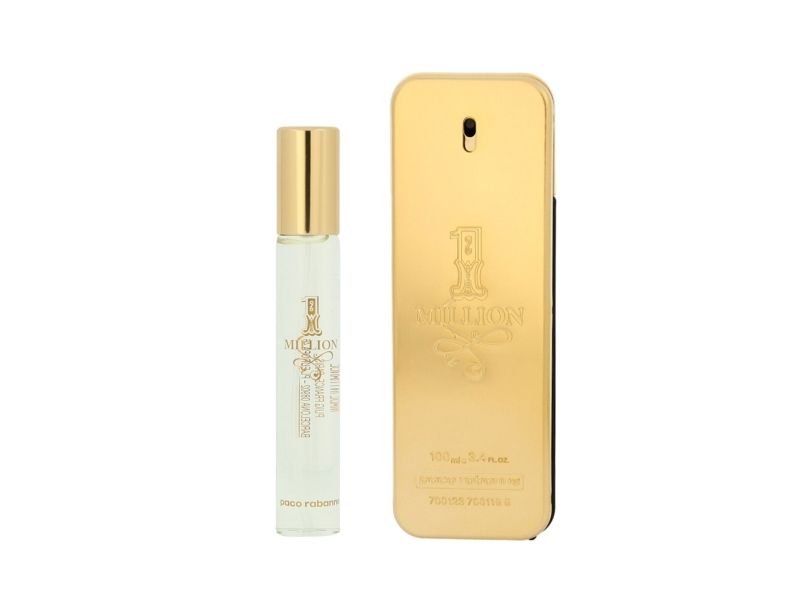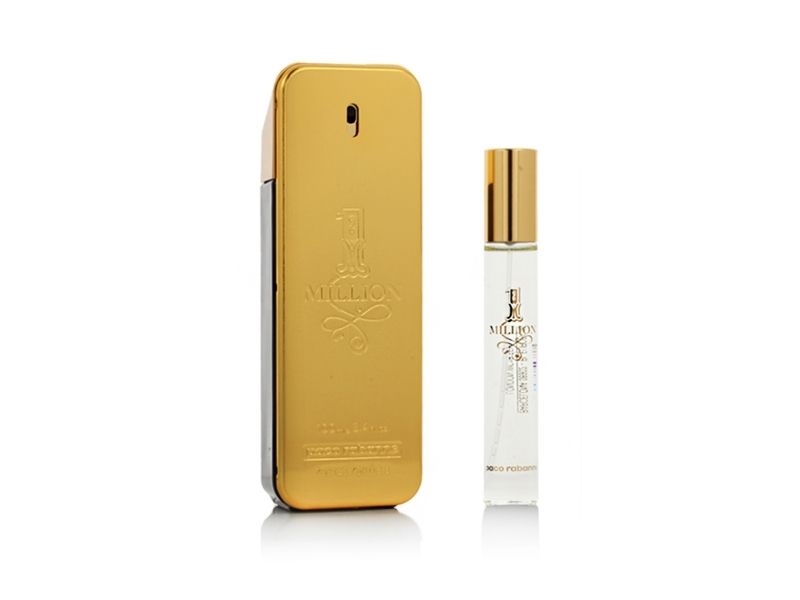 Inspired by Rabannes metallic fashions 1 Million was in particular a 1967 dress worn by singer Frani 12oise Hardy The fragrance was developed by perfumers Olivier Pescheux Christophe Raynaud and Michel Girard and features notes of grapefruit rose cinnamon spice notes mint blood orange blond leather white woods amber and patchouli The 1 million bottle is modelled after a gold ingot