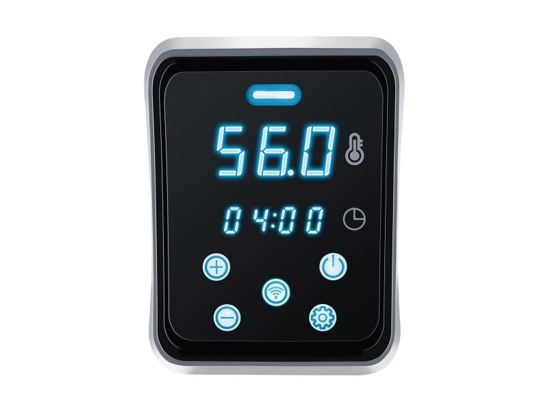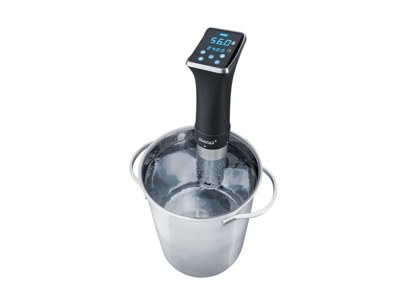 With the Sous-Vide cooker SV 80 from Steba, the dishes are a success in no time at all. It is mobile, space-saving and handy. The SV 80 is hung in any container that is at least 15 cm deep and heats the water it contains to up to 90°C. SousVide is a method of cooking food in vacuum sealed bags at low temperatures for a long time. Vacuum packaging, slow cooking and all round heat transfer from the water to the food reduces bacterial growth. The salts, the taste and the juiciness are preserved! The Sous-Vide cooker SV 80 heats 20 liters in approx. 45 minutes to 56°C with a maximum deviation of 0.1°C. In addition, the SV 80 has a WIFI function, so the cooking rod can be easily and conveniently controlled via mobile phone or tablet. The LC display provides information about the set time and the current temperature.