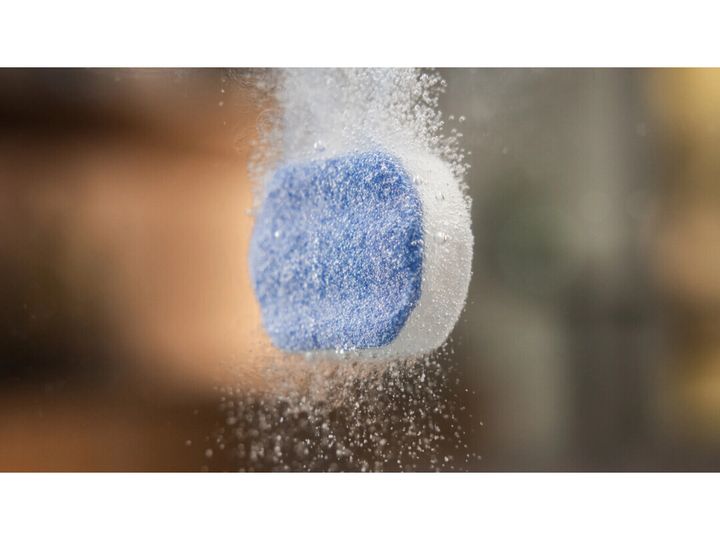 Løs opp tabletten i vann eller sett den direkte inn i maskinens avkalkingsprogram.
