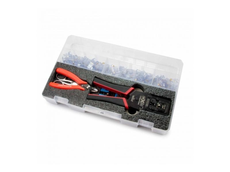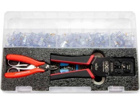 Featuring the EXO crimp frame with the EXO-EX and EZ-RJ45 interchangeable dies, the EXO termination kit supplies everything you need to terminate Cat5e, Cat6, and Cat6A cables. Using the original EZ-RJ45 Cat5e and ezEX-RJ45 connectors, give installers a fast solution for terminating Ethernet cabling.