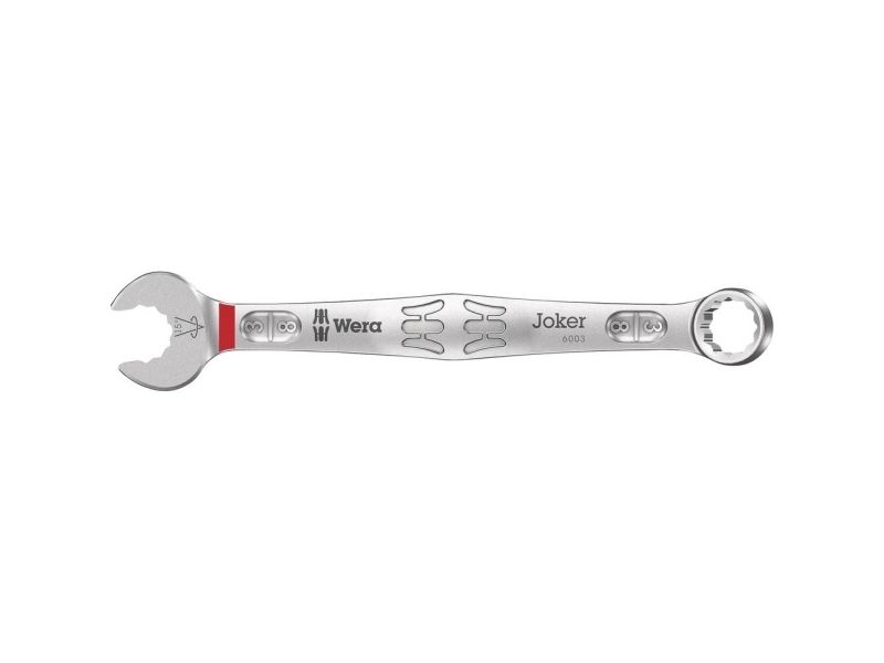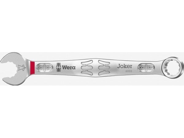 As the installation space becomes increasingly tight during screwdriving, it remains necessary that tools enable users to work successfully. Narrow spaces require additional placement points of the tool. Can spanners be modified so that the placement possibilities of the tool increase? The combination of the 7.5° pivoted mouth and the double hexagon geometry doubles the placement points. A repeated 180° turn of the wrench around the longitudinal axis during screwdriving provides four placement possibilities, and bolts or screw heads can be "taken" every 15°. The Joker 6003 with its smart mouth geometry significantly expands the range of uses in confined spaces. The Joker 6003 will automatically find the respective placement point after every turn. The slim yet robust ring side is angled by 15° to the tool axis. The high-quality surface treatment achieves a high and long-lasting corrosion protection. With Take it easy tool finder: colour coding by size.