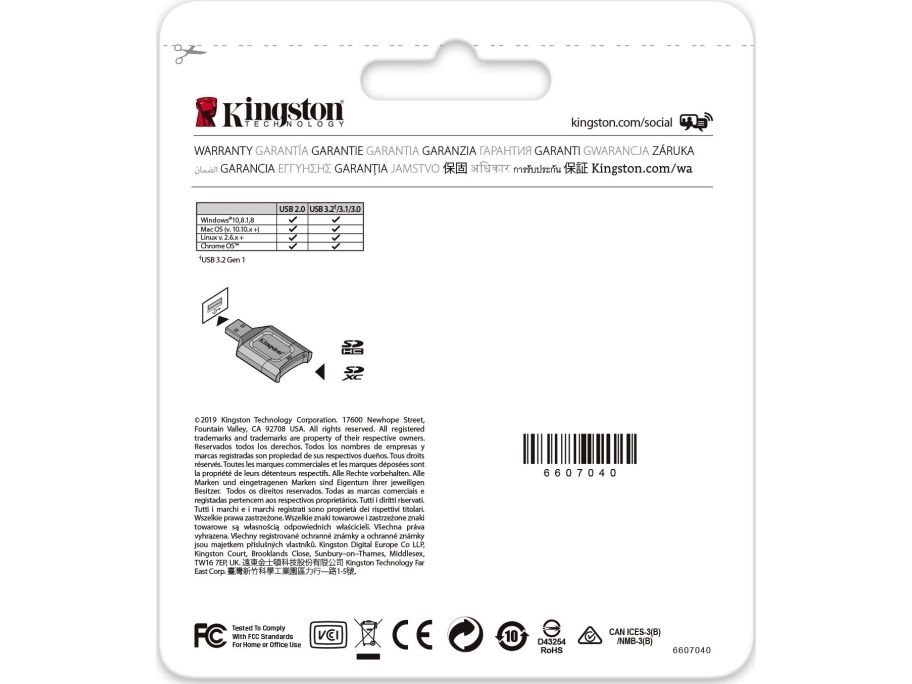 Kingston Technology MobileLite Plus, SD, Sort, USB 3.2 Gen 1 (3.1 Gen 1) Type-A, 51,8 mm, 33,5 mm, 9 mm