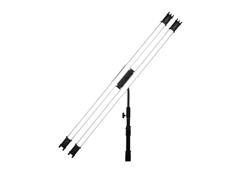 The NanLite Pavotube Double Bank 2 T12 LED Tube Mount is a simple and elegant grip solution for mounting up to 2 Pavotube 15C or 30C LED Tubes on a single light stand via a standard 5/8" receiver. With a gooseneck and swivel ball joint for articulation, the Double Bank maximizes the versatility of Pavotubes on set.