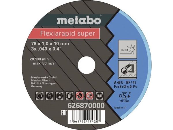 Metabo 626870000, Kutteskive, Flatt senter, Rustfritt stål, Metabo, 1 cm, 7,6 cm