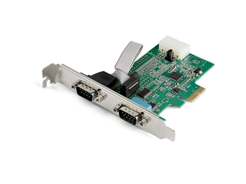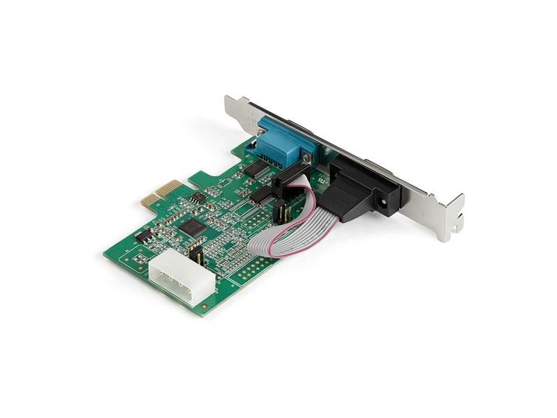 This adapter card lets you add two RS-232 serial ports to your computer through a PCIe slot, as if they were native serial ports. The dual port PCIe serial card enables you to interact with serial devices, such as card readers, printers, PIN pads, and modems. The card comes pre-configured with a full-profile bracket, and includes low-profile brackets, so installation is easy regardless of the case form factor.