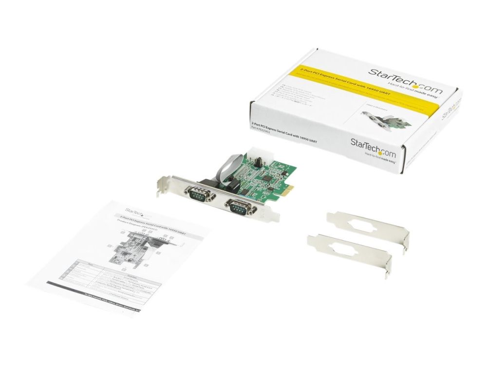 Startech 2-port PCI Express RS232 Serial Adapter Card, PCIe RS232 Serial Host Controller Card, PCIe to Dual Serial DB9 COM Port Card, 16950 UART, Expansion Card, Windows, macOS, Linux - Full/Low-Profile (PEX2S953) - Seriell adapter - PCI Express x1 - RS-232 x 2