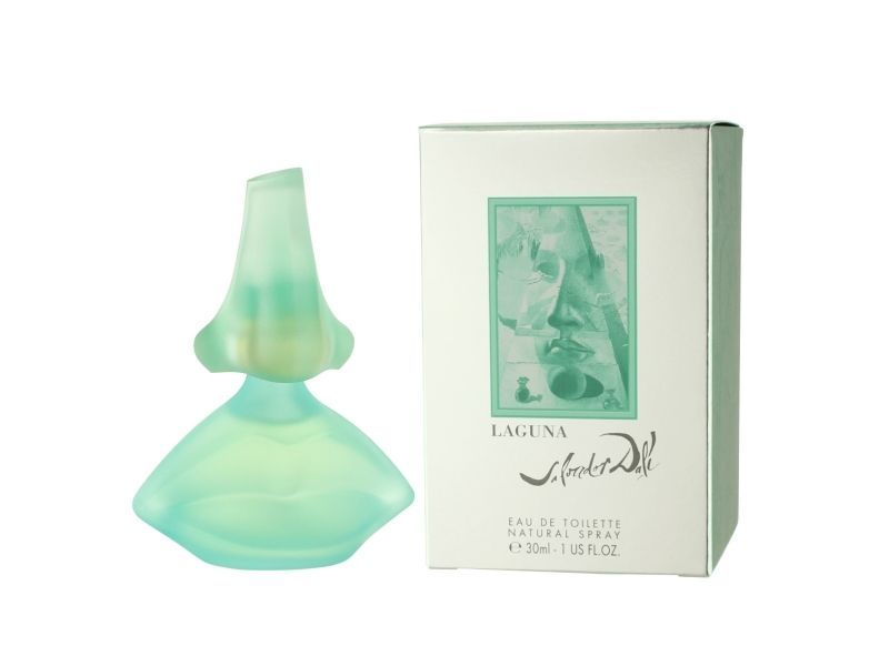 Inspired by the Aphrodite of Knidos's lips and nose as Dali represented them in his famous painting, the soft blue-green lagoon hues of the sculptured frosted glass bottle are an invitation to fresh new sensations and escape.
