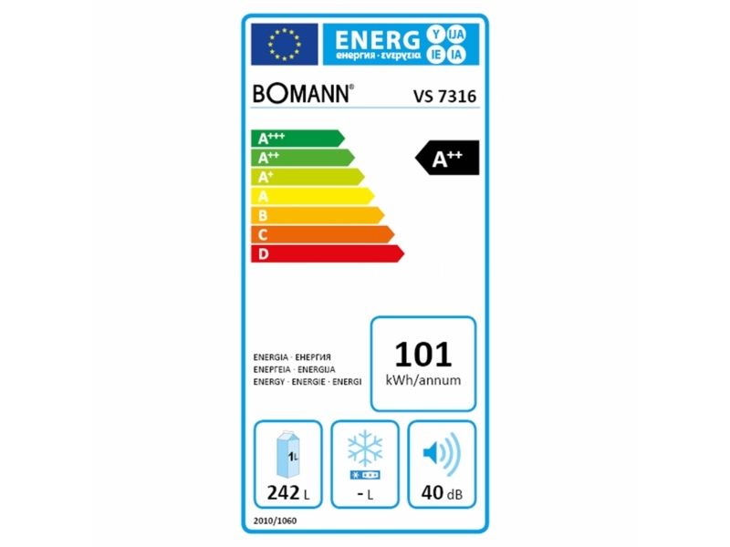 Bomann VS 7316 - Kjøleskap - bredde: 55 cm - dybde: 58.8 cm - høyde: 143.4 cm - 242 liter - Klasse E - rustfritt stål