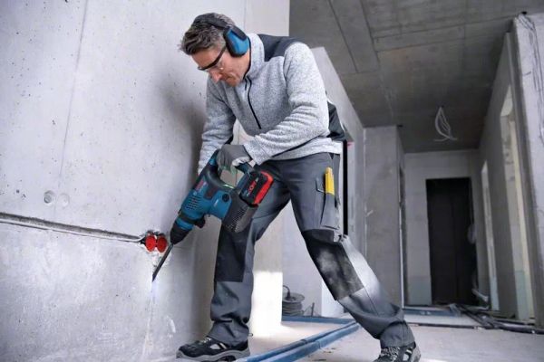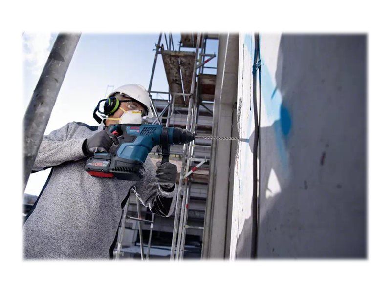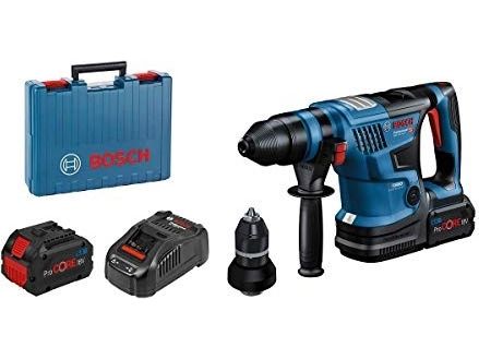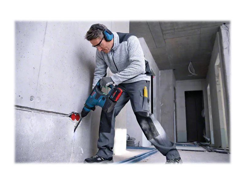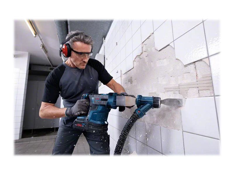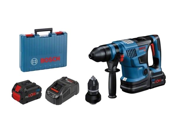 Dybdeanslag, fett tube, ekstra håndtak, 13 mm kjoks uten nøkkel, cleaning cloth, fast charger GAL 1880 CV, SDS plus chuck, Bosch GCY 42 Professional bluetooth module