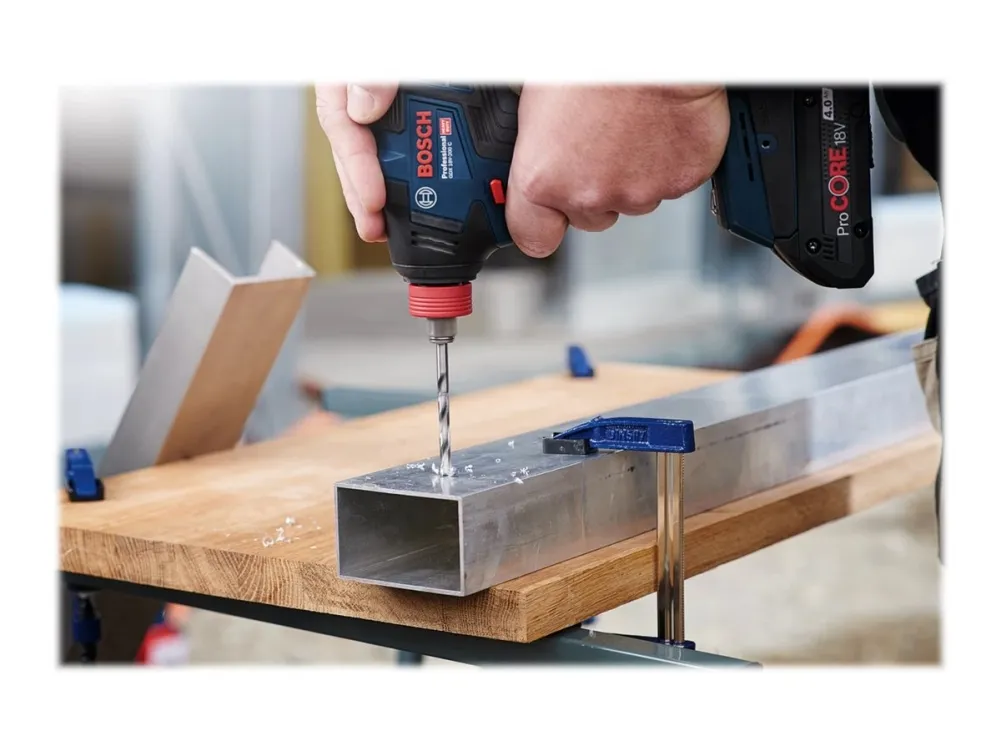 The HSS Twist Drill Bit PointTeQ enables fast drilling in metal due to its PointTeQ tip design. Quick and easy drilling starts are possible as the self-centering tip prevents wandering. Because of its increased drilling rate, less heat and wear are generated. The PointTeQ tip design remains sharp and ensures continuous durability. This bit is suitable for drilling clearance and pilot holes in alloyed and non-alloyed steel, non-ferrous metals, cast steel, cast iron and plastics. It has a cylindrical shank system (shank equal to drill bit diameter) and is intended for use in drill stands and drill drivers.