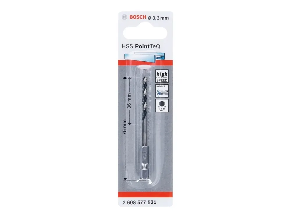 Bosch HSS PointTeQ - Bor - for metall - bor - 3.3 mm - heksagonal - lengde: 75 mm