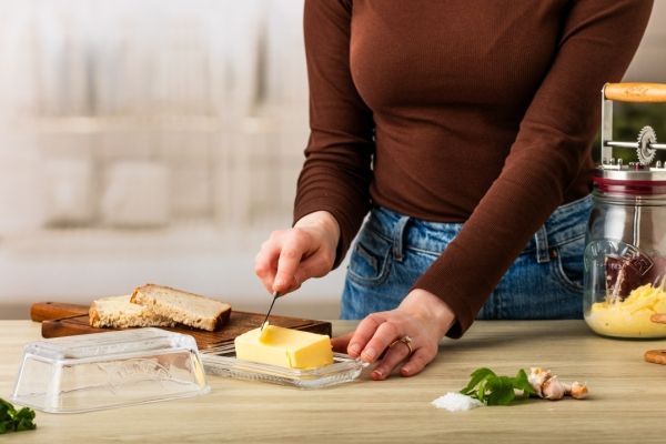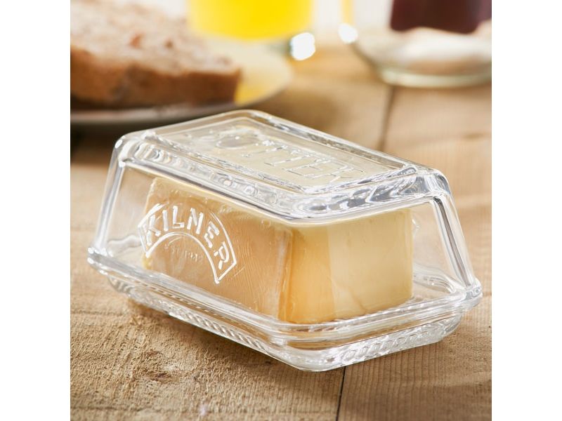 Den klassiske smørholder af glas fra Kilner®, præget med Kilner®-logoet og ordet "smør", er en vigtig genstand til ethvert køkken. Perfekt til opbevaring af smør i køleskabet eller servering ved spisebordet. Det elegante design komplet med låget holder smørret friskt. Passer til op til 250 g.