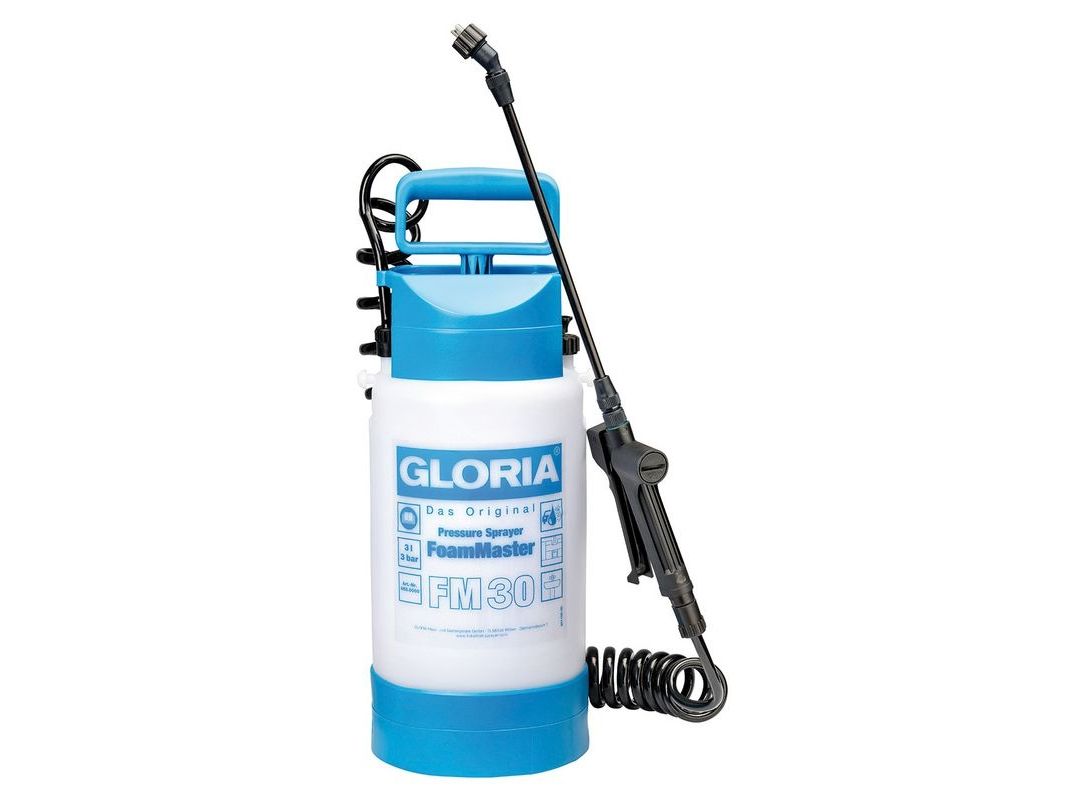 Det praktiske 3 L tryksprøjteapparat Gloria FoamMaster FM 30 forvandler rengøringsmidler til et effektivt renseskum, der virker intensivt på den behandlede overflade og kan give et endnu grundigere rengøringsresultat. Desuden er der økonomisk rengøringsskum til anvendelse og sørger for en betydeligt lavere anvendelse. FM 30 er udstyret med modstandsdygtige FKM-pakninger samt en fladstråledyse med 110° sprøjtevinkel. Dette sprøjteapparat imponerer takket være en 2,0 m lang spiralslange samt en hurtiglukkende ventil. En effektiv og komfortabel hjælper ved bil- og maskinrengøring samt rengøringsarbejde i sanitæranlæg, svømmebassiner eller storkøkkener. Til de forskellige anvendelser er forskellige skumningsgrader påkrævet. FM 30 kan derfor anvendes fleksibelt med skiftedyser i et snuptag. Den særligt udviklede fladstråledyse sørger desuden for ensartet spredning af den anvendte væske. En højtydende trykpumpe, en stabil plastbeholder samt en fodring til sikker stand sikrer et altid komfortabelt arbejde.