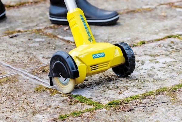 Fugerenser Weedbrush-on - batteri-fugebørste/ukrudtsbørste Ukrudtsfugebørste med batteridriftSkånsomt arbejde for hurtigt og ryggenKompatibel med alle Bosch 18V Power TIL ALLE batterier (batteri/oplader medfølger ikke)Inkl. Messingbelagt ståltrådbørsteOmdrejningstal: 1800 omdr/minStyrehjul og sigtelinje til nøjagtig betjeningOmkransende stænkbeskyttelseErgonomisk greb med softgrip Gloria WeedBrush li-on er den praktiske ukrudtsfugebørste til anvendelse i haven derhjemme og rundt om huset. Det praktiske apparat kan anvendes med alle Bosch 18 V Power FOR ALLE batterier fra 1.5 - 6.0 Ah og er med 1.900 omdr/min den ideelle hjælper til at befri fuger på ukrudt og mos. Den messingbelagte stålbørste er inkluderet i leveringen og imponerer med en arbejdsvarighed på op til tre timer på betonsten. Derudover tilbyder Gloria med nylon-fugebørsten en blidere variant. Det har bløde børster og er dermed særligt velegnet til ridsefaste stenoverflader. Takket være føringshjul og sigtelinje samt den omsluttende stænkbeskyttelse garanteres et præcist og rent arbejde. Det højdejusterbare og ergonomiske ekstrahåndgreb giver en sund kropsholdning under arbejdet.