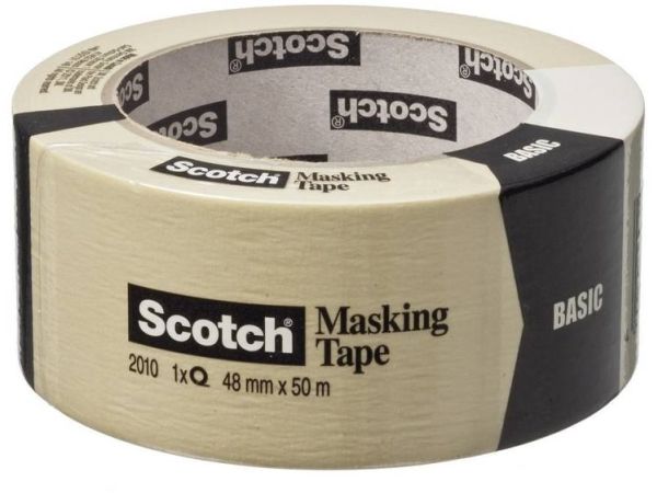 Scotch® Basic Masking Tape is a beige masking tape for use on non-damageable surfaces, with no residue if removed up to 1 day after application.