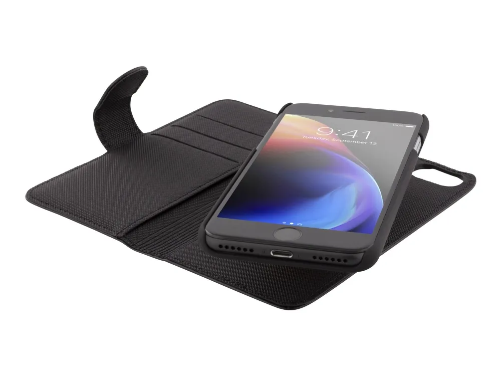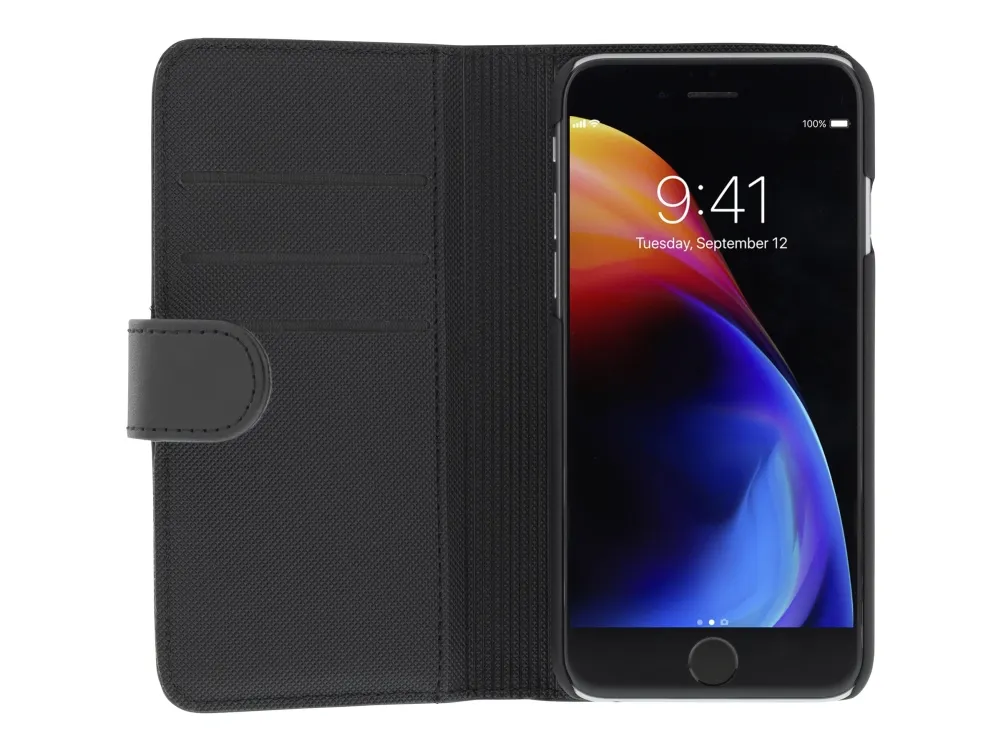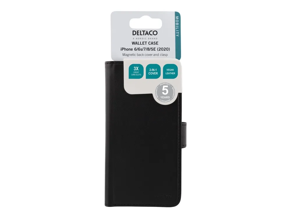 DELTACO - Lommebok for mobiltelefon - gummiert - svart - for Apple iPhone 7, 8, SE (2nd generation)