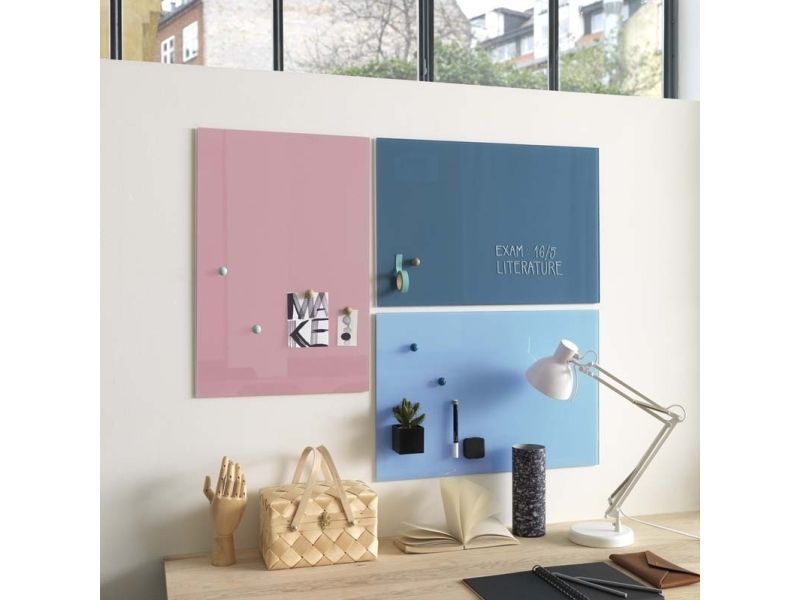 Lyseblå Magnetisk GlastavleEn magnetisk glastavle kan bruges som opslagstavle ved brug af stærke magneter.