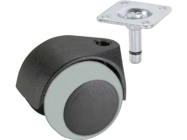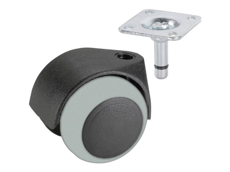 Kabinet: Sort plast, ryghul 8 mm. Hjul: TPE, sporfri, glideleje.