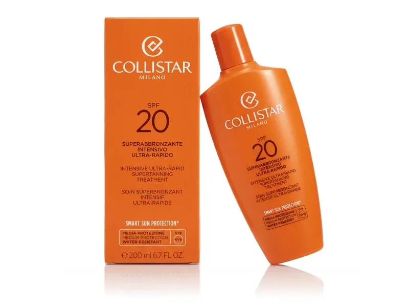This revolutionary, one-of-a-kind sun product ensures an unprecedented tanning effect. Strict tests have shown that it speeds up and boosts tans thanks to the combination of Unipertan® - an exclusive energizing tan intensifier that is an essential ingredient in Collistar's sun products - with oleoyl tyrosine, betacarotene and carrot extract to boost its effectiveness. A genuine tan activator, the product stimulates, accelerates and increases the natural production of melanin, thereby allowing you to tan quickly, even when the sun is less intense. But that's not all: it also ensures your tan is brighter and lasts longer. Its formula, rich in Vitamin E, glycerol and precious plant oils, protects from the drying action of wind and salt and has an intense nourishing, moisturizing and anti-age effect. When used a few days before, it helps prepare the skin for the sun.