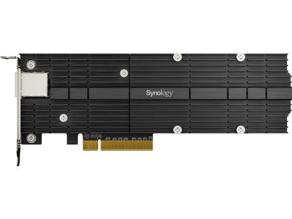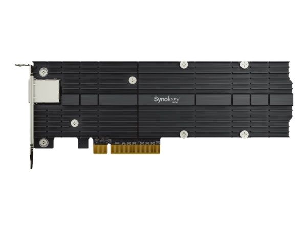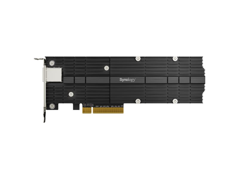 Synology E10M20-T1 helps you boost I/O performance and network bandwidth simultaneously using just one PCIe expansion slot on your Synology NAS.