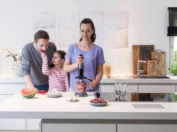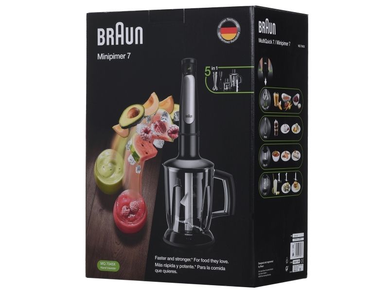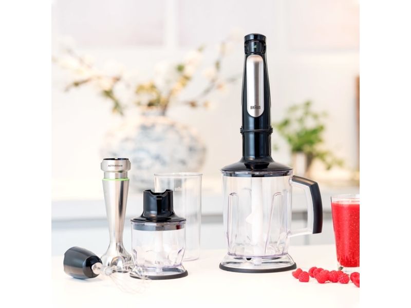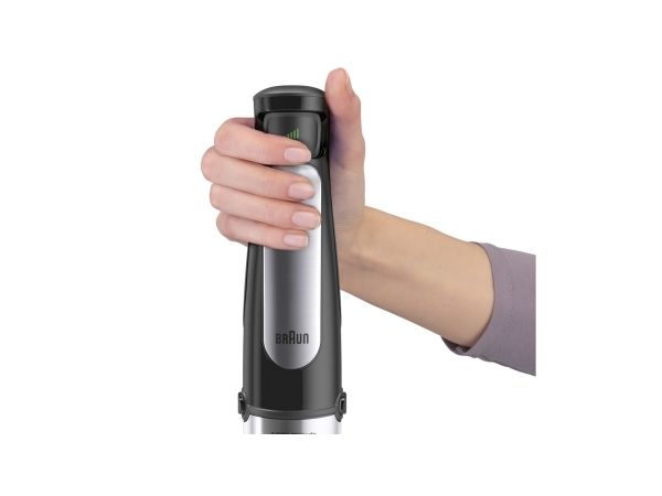 The new Braun MultiQuick 7 hand blender is designed to help you make healthy meals for your family and friends - fast and easy. It now features world's first ACTIVEBlade technology. This innovative flexible shaft gives you 250 % more active cutting surface to work with - a clever kitchen helper so you can get the job done easily. It also features Braun's new Easy SmartSpeed technology, which puts you in control with just one touch. Simply apply pressure on the control button to adjust the power intuitively and without interruption.