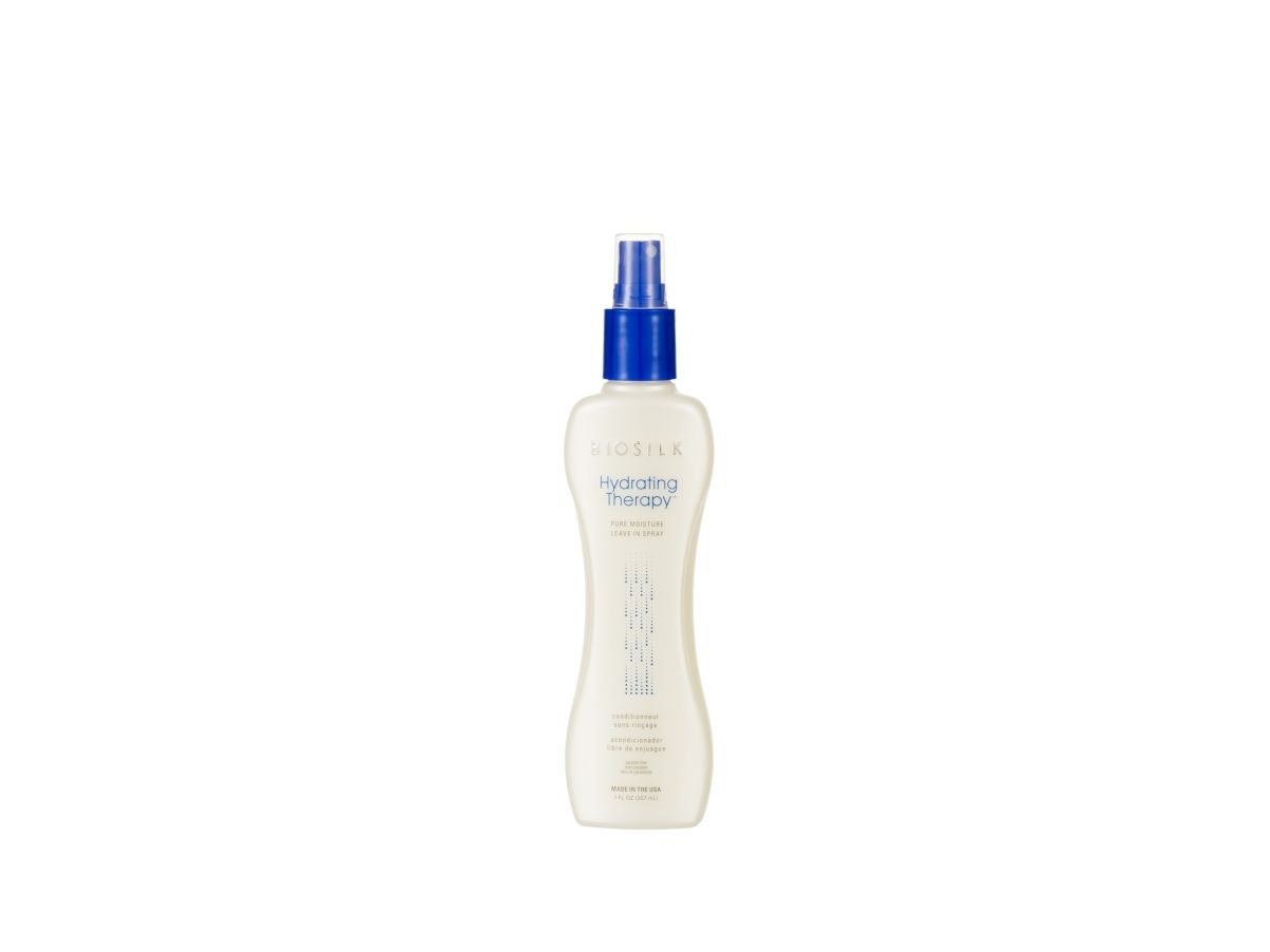 BioSilk Hydrating Pure Moisture Leave in Spray protects hair from moisture loss and frizz by sealing the cuticle layer of hair.