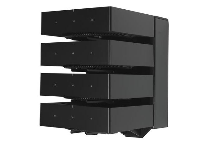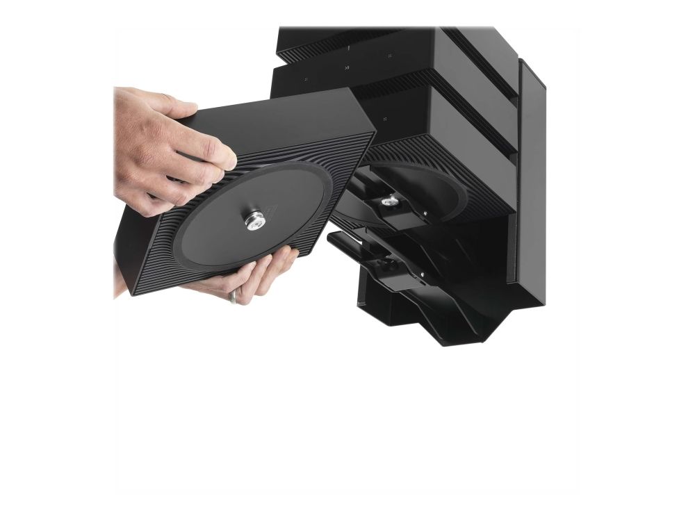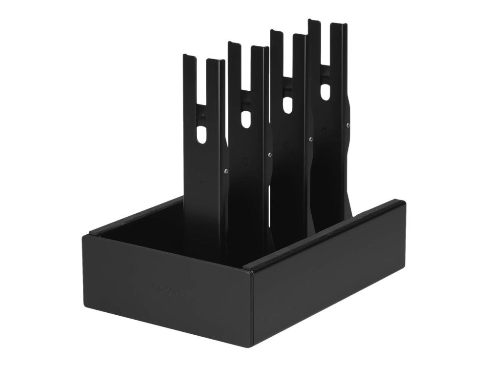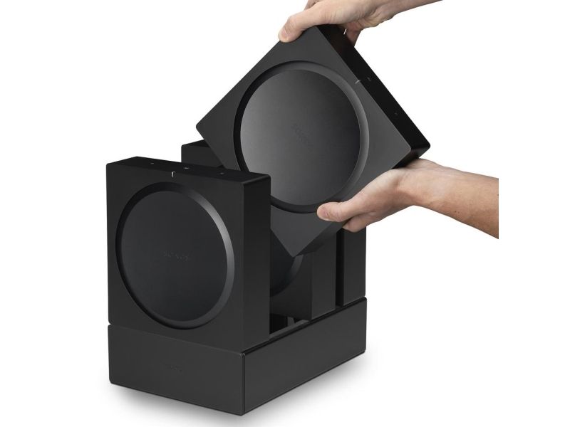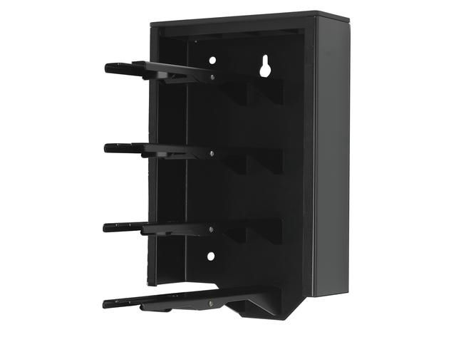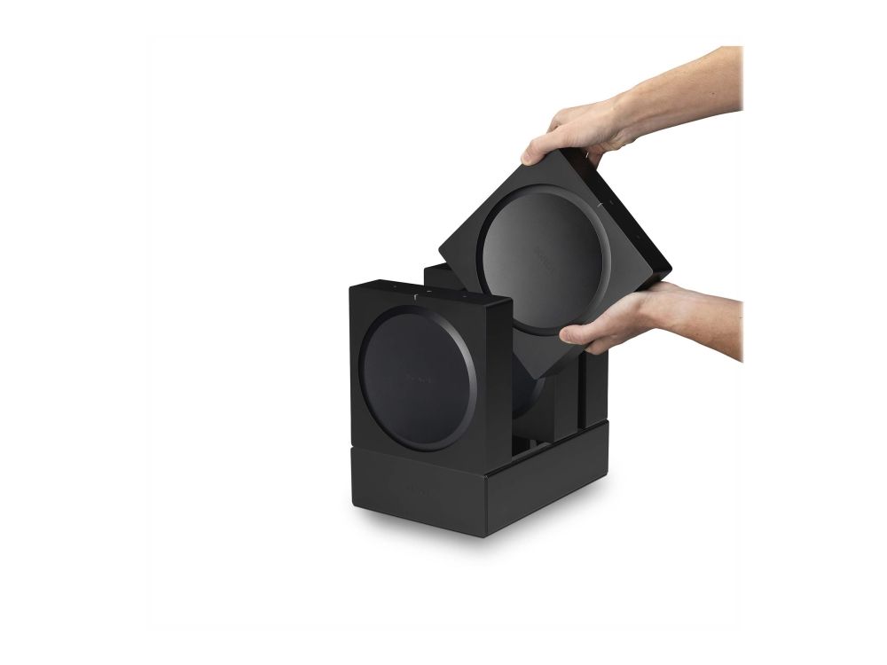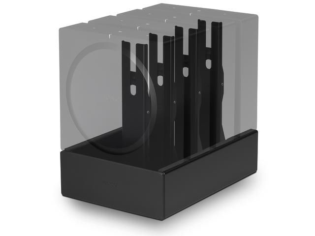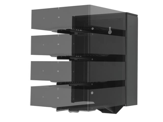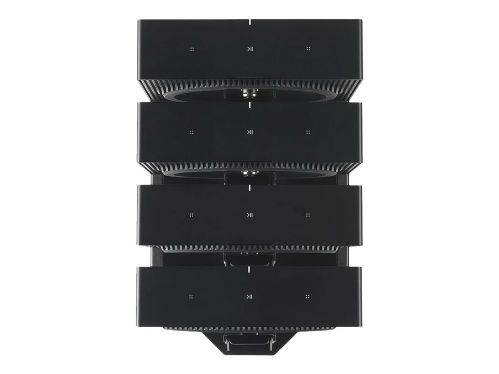 The Flexson Dock holds up to four Sonos Amps, keeping your install looking compact and tidy. Once the unit is fitted to a wall or cabinet the four Sonos Amps simply slide in. The Sonos Amps then click into place and are held securely in position via clever retaining clips. These clips will allow the unit to be mounted underneath a cabinet if required. There is also enough space inside the Dock to neatly run cables from all four units. The robust steel construction is colour matched to the Sonos Amp.