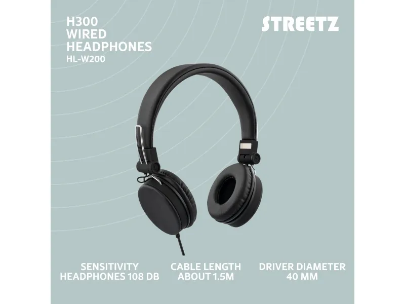 Streetz HL-W200, kabel, 20 - 20 000 hz, samtale/musikk, hodesett, svart