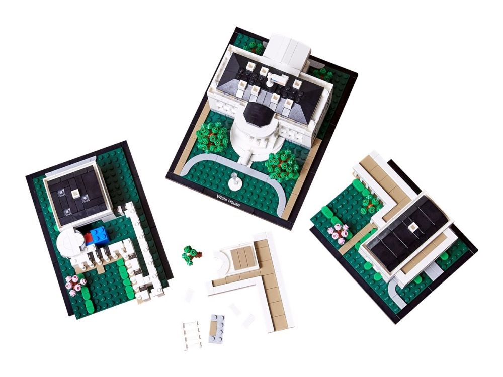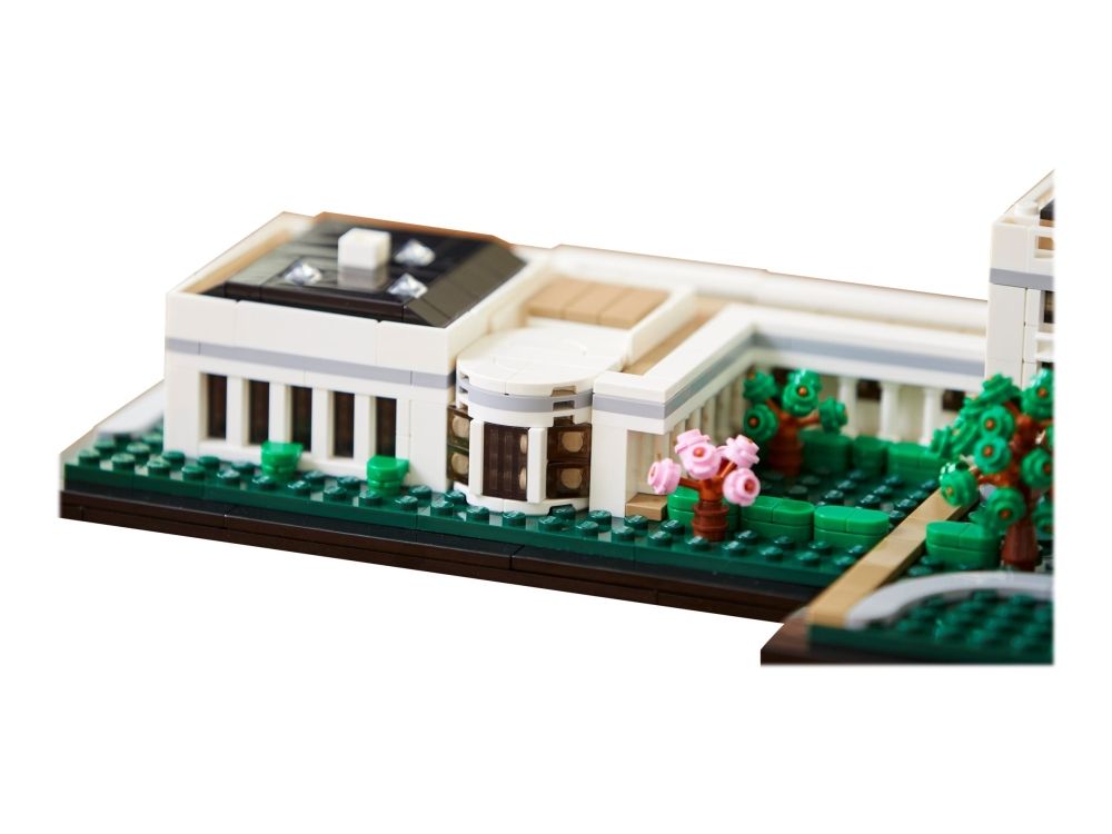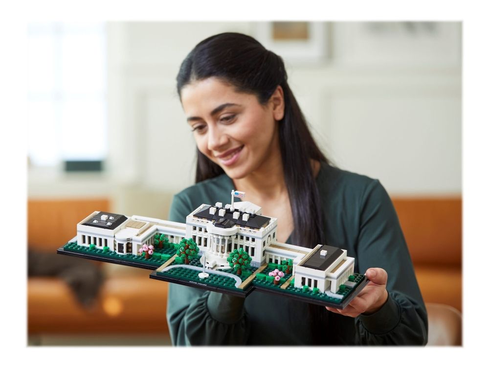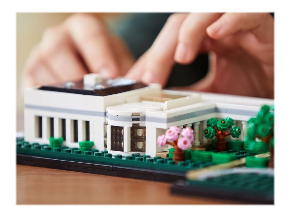 2. Dette LEGO® byggesettet for voksne inkluderer detaljer som presidentens embetsbolig, vestfløyen, østfløyen, søylegangene, rosehagen og Jacqueline Kennedy-hagen.