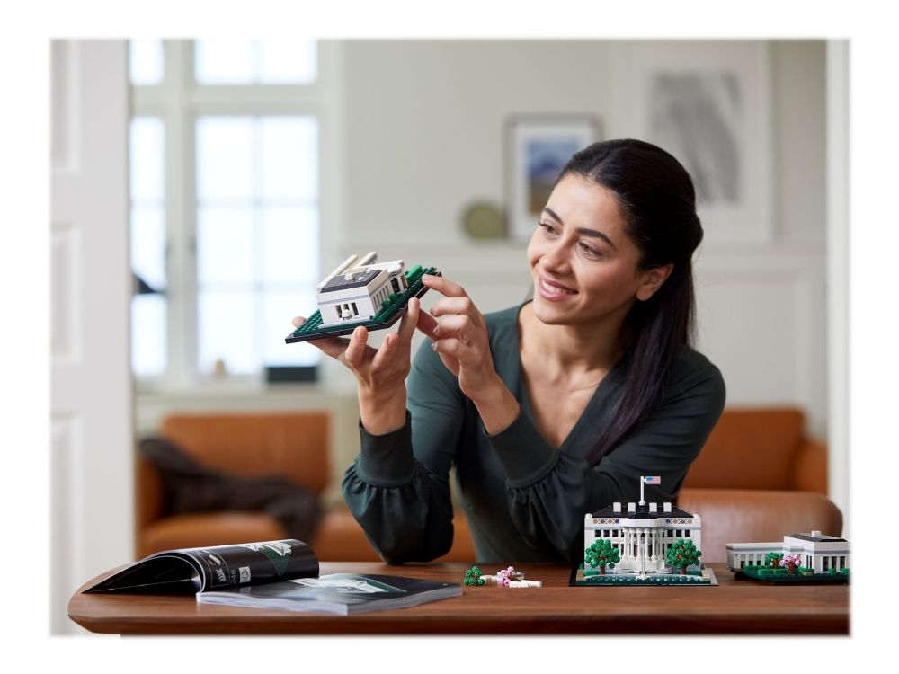 1. Denne LEGO® Architecture utstillingsmodellen av Det hvite hus (21054) gjenskaper den nyklassisistiske arkitekturen og de storslåtte detaljene til denne verdenskjente boligen som har huset alle USAs presidenter siden 1800.
